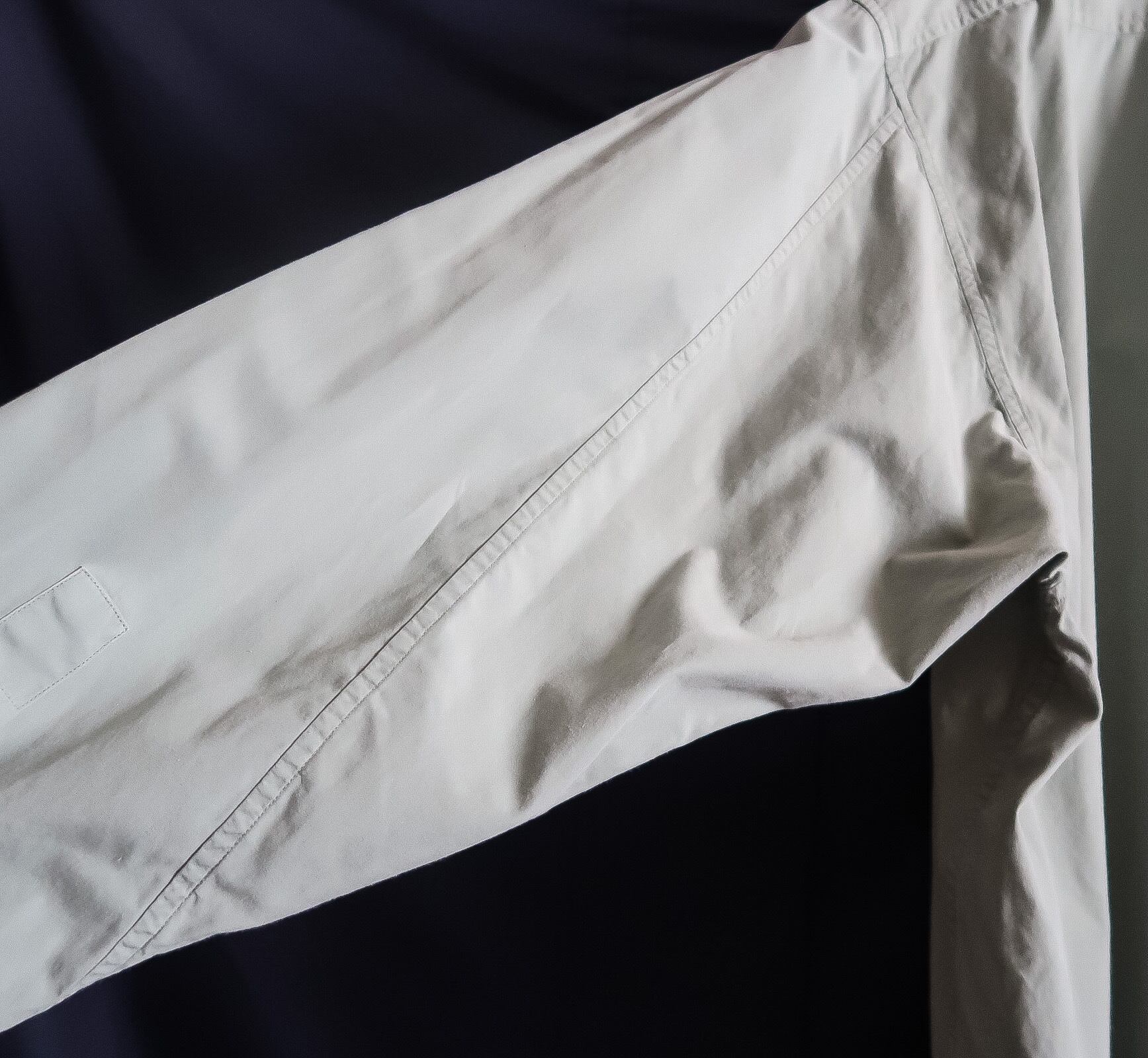 アンティークのようなシェルボタンが使われていたり、サイド裾にはかなり大きなマチが付くなどディテールも素晴らしいシャツです。