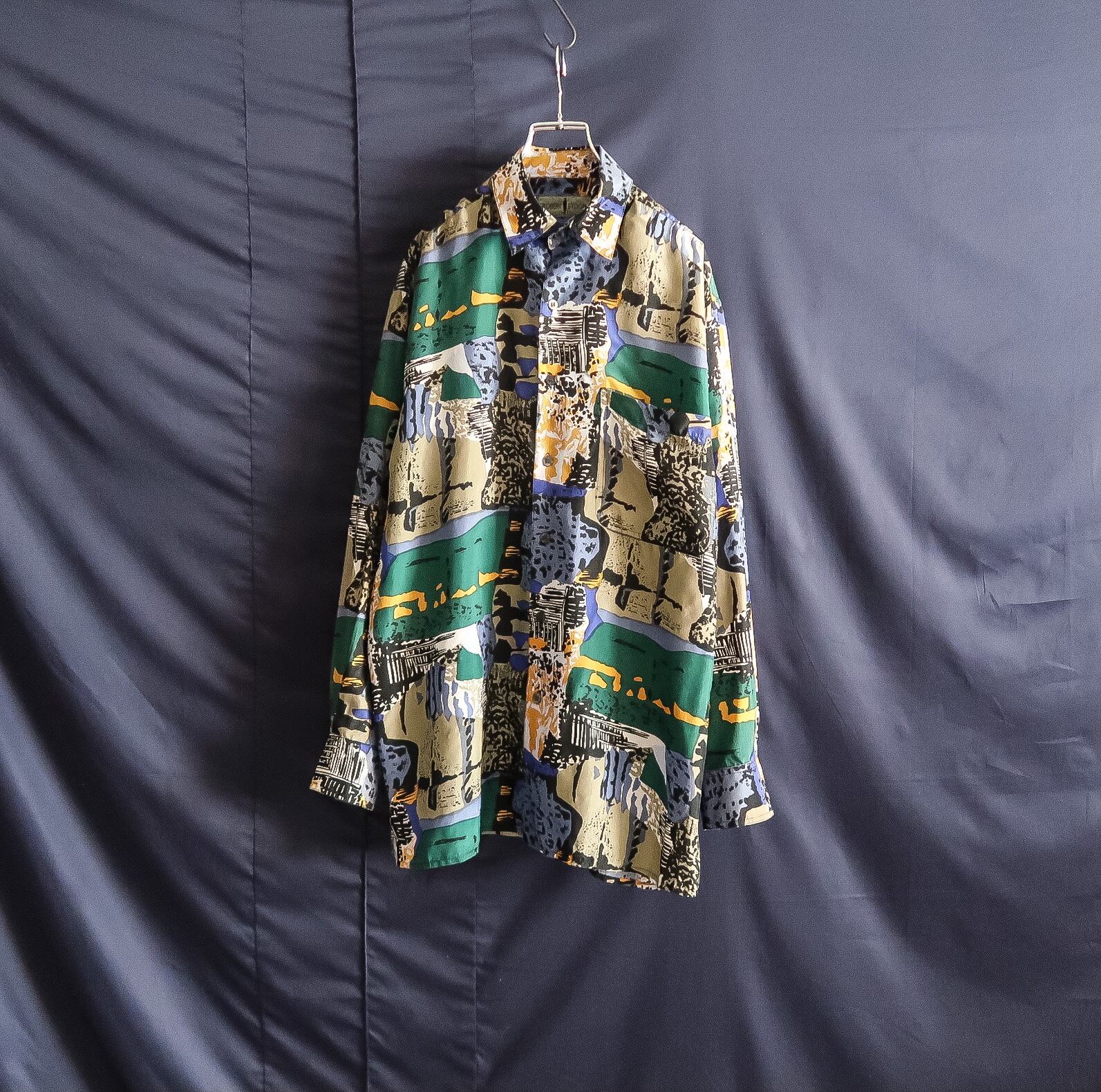 Dead stock! 1990's~ "ROBERT STOCK" patterned allover silk shirt