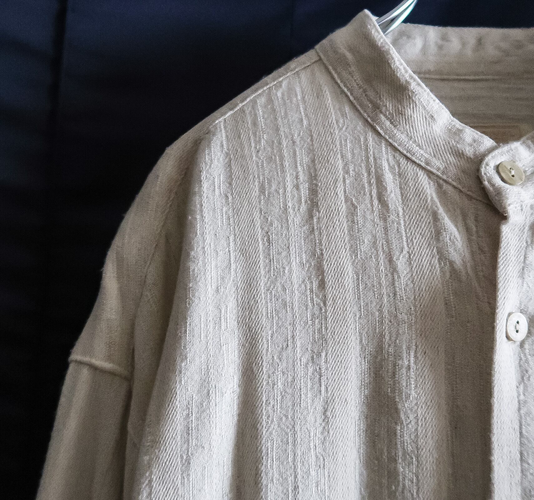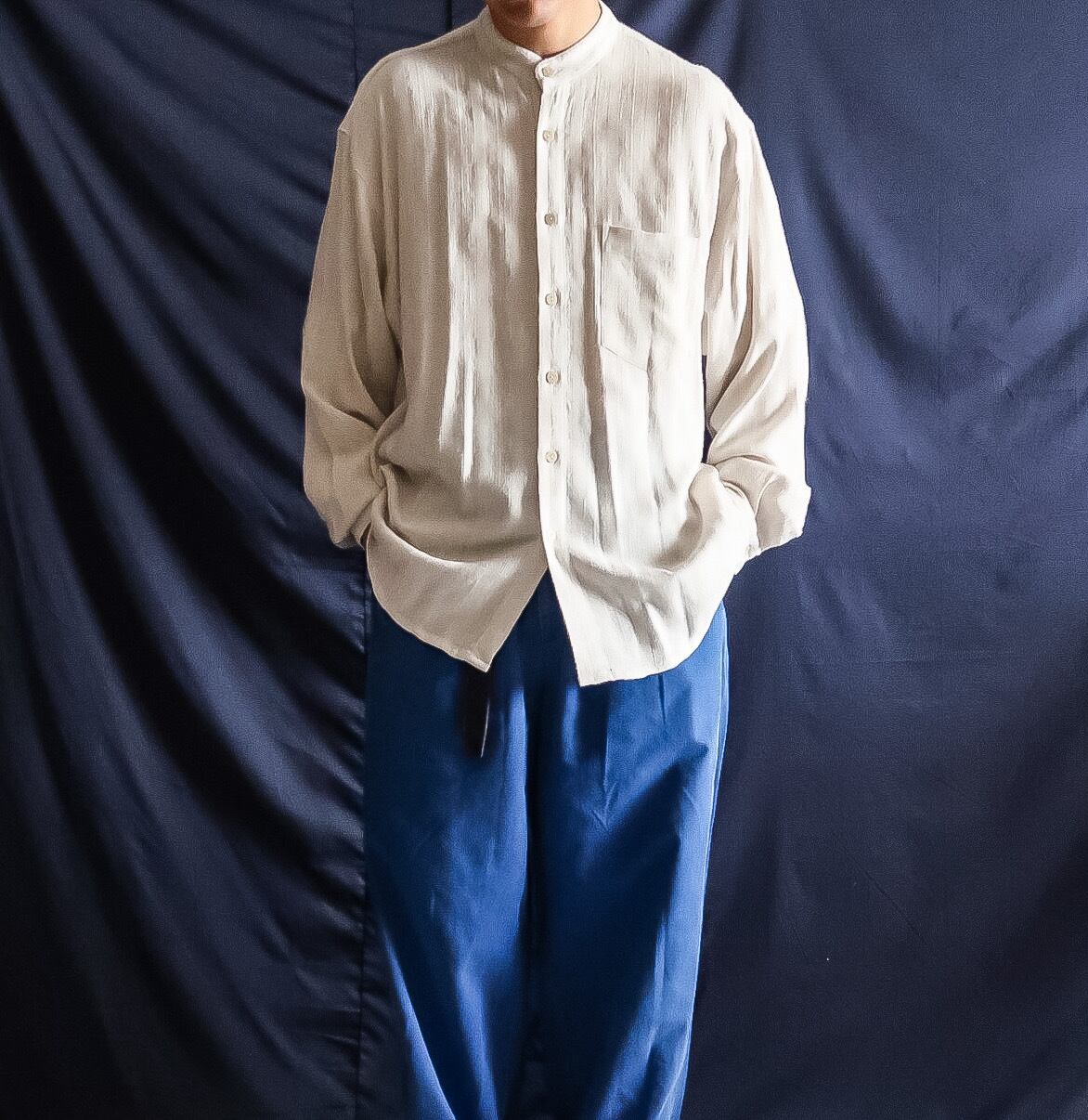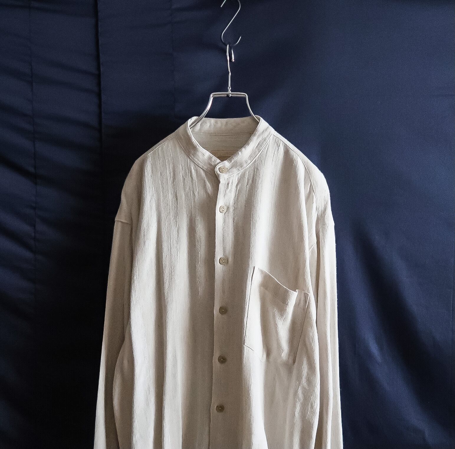 特徴 :アイボリー系の柔らかな色合いの1990's~頃のバンドカラーシャツ。