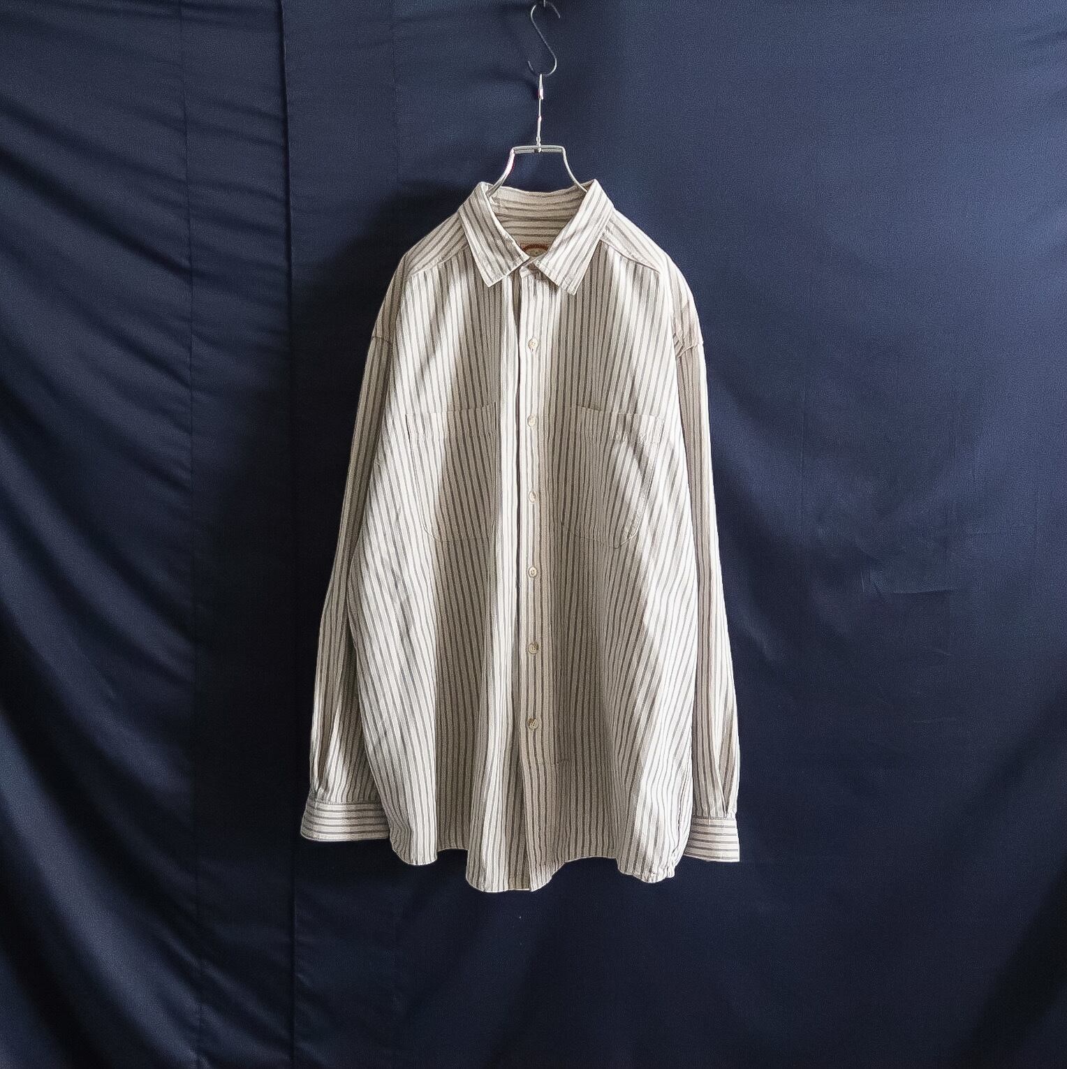 1980's "BANANA REPUBLIC" bigsize stripe pattern cotton shirt made in USA