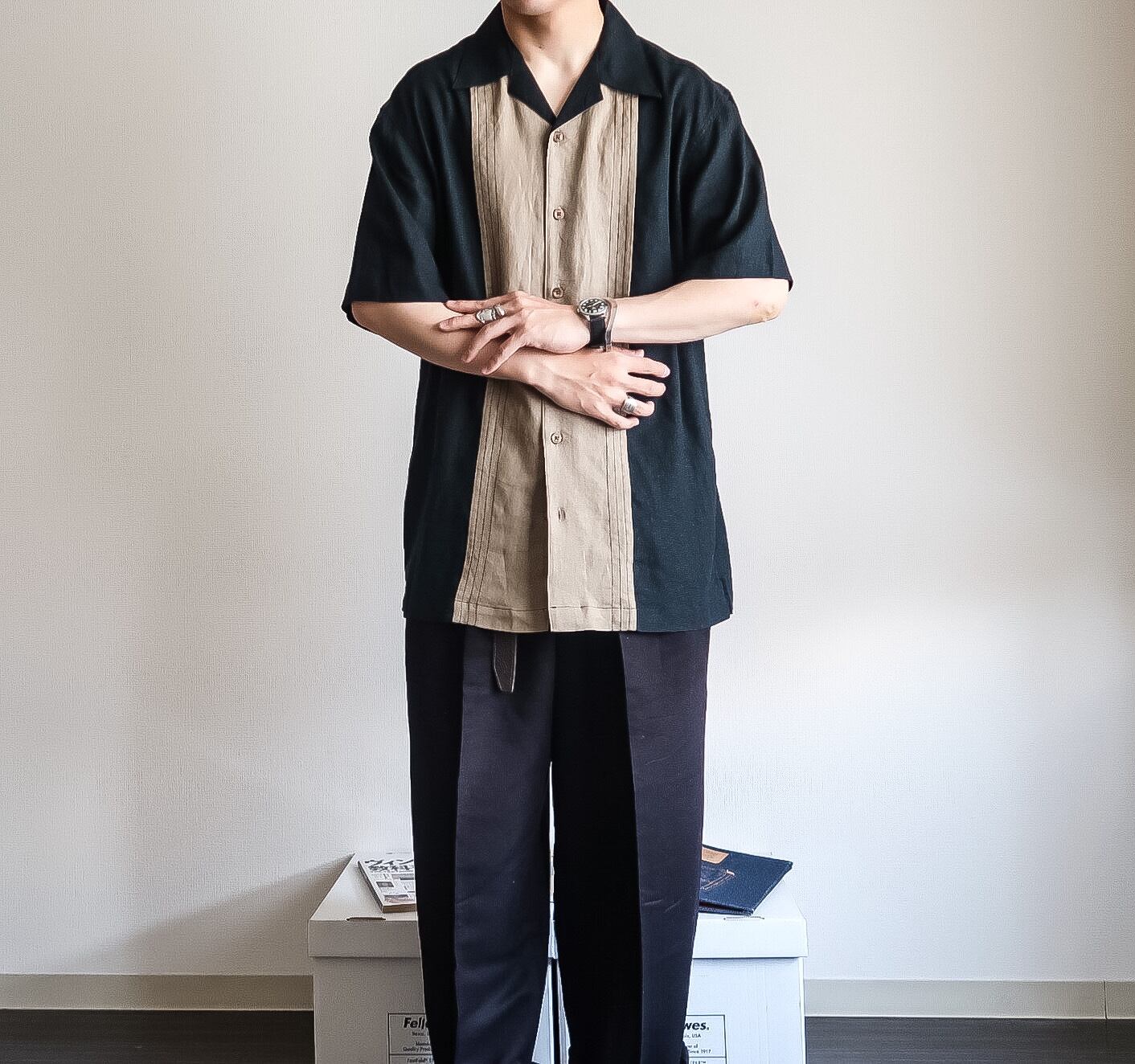 特徴 :ボックスシルエットに人気なオープンカラーの1990's~頃の半袖シャツ。