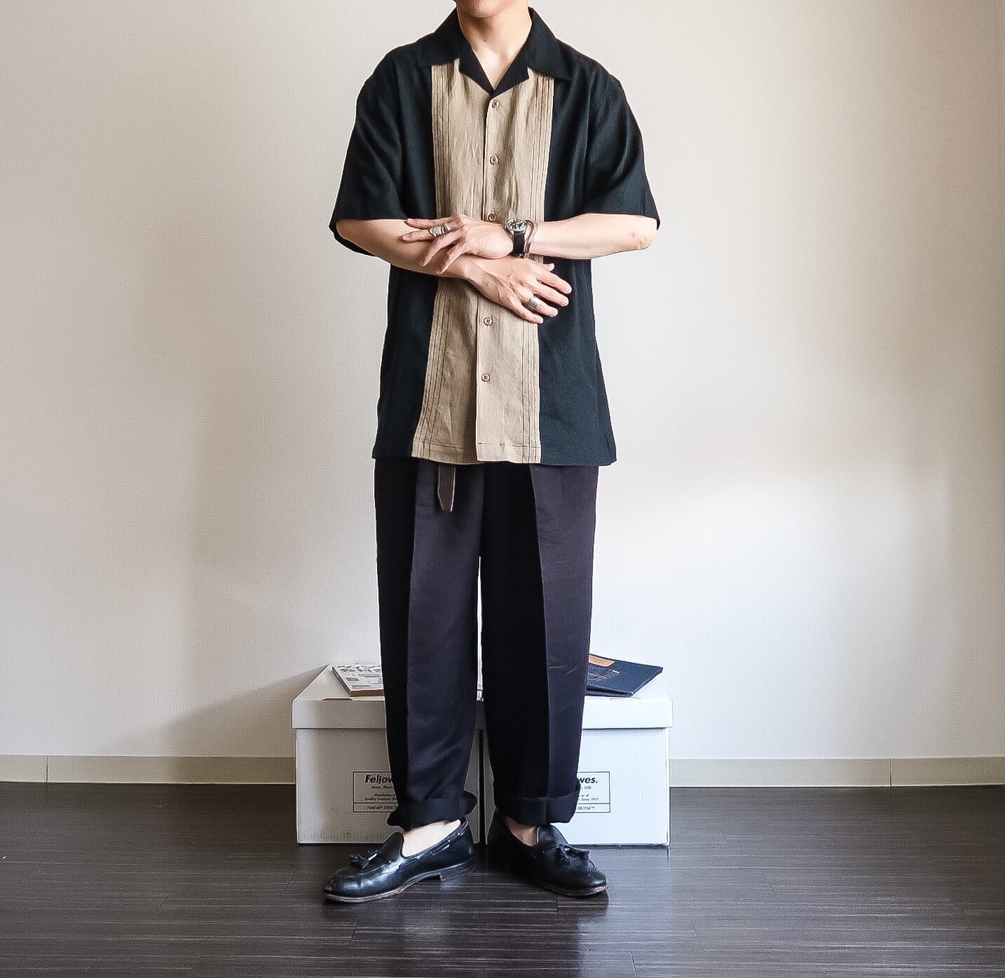 スリータックのブラックスラックスは別格な格好良さですね。