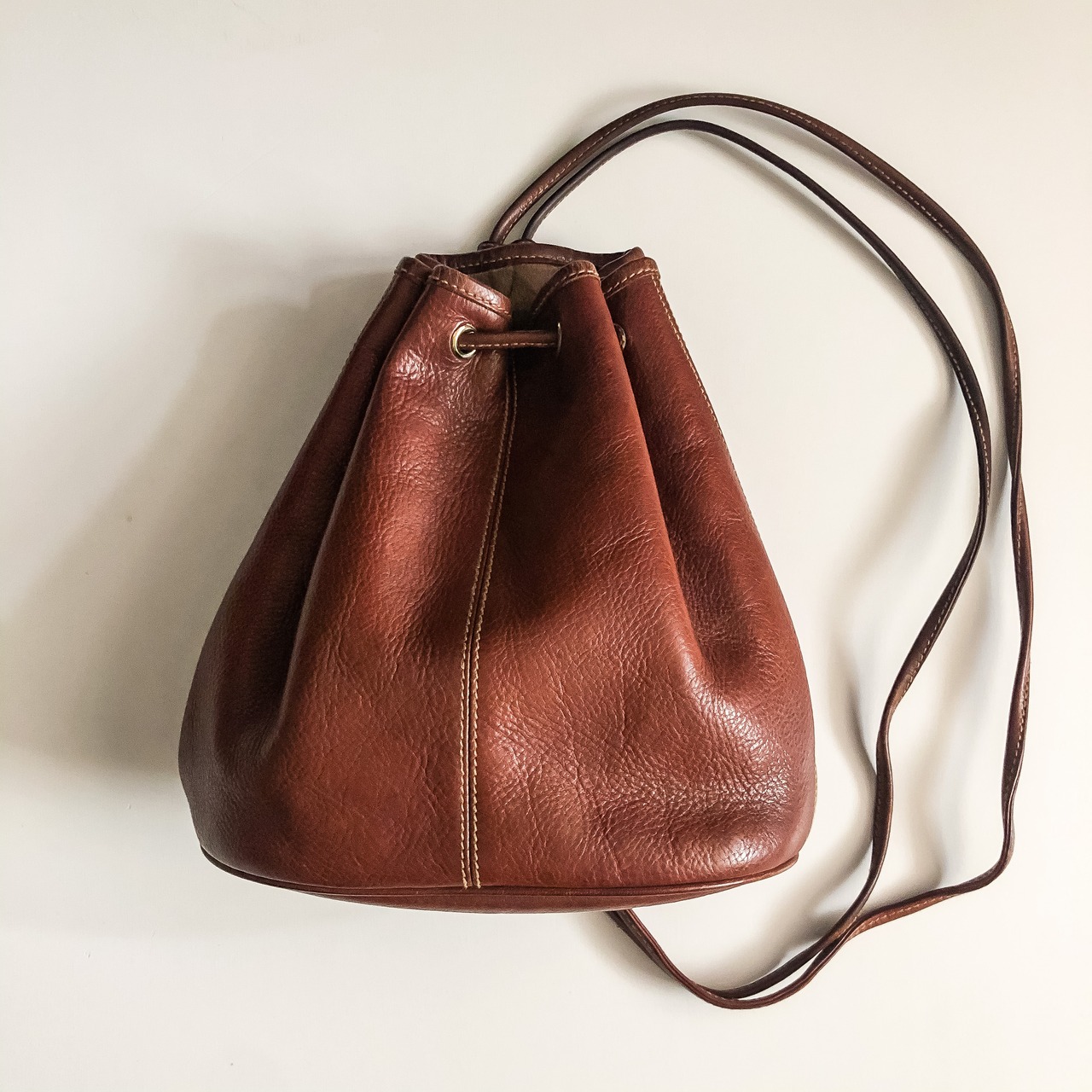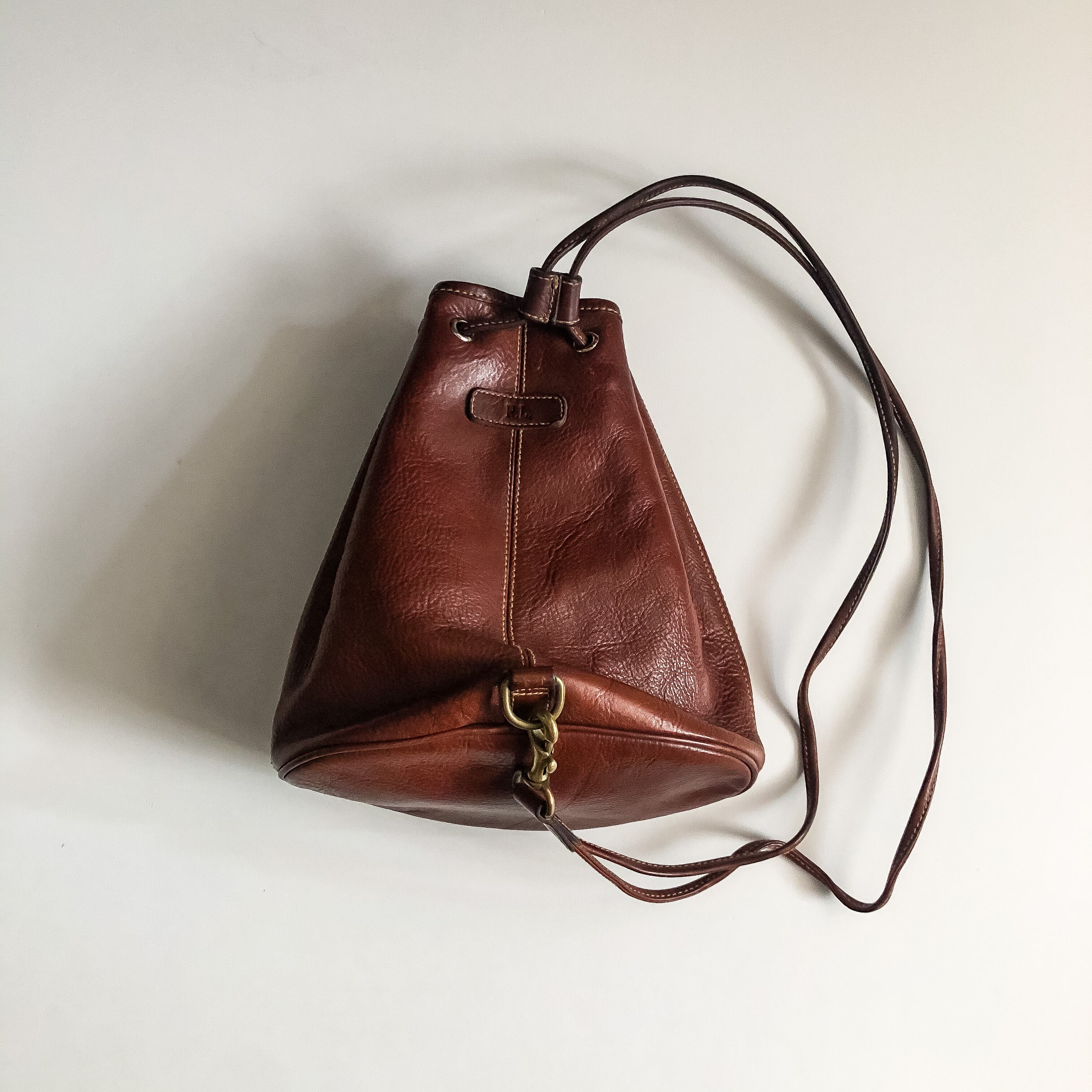 特徴 :1990's~頃の珍しいラルフローレンの巾着型のレザーバッグ。