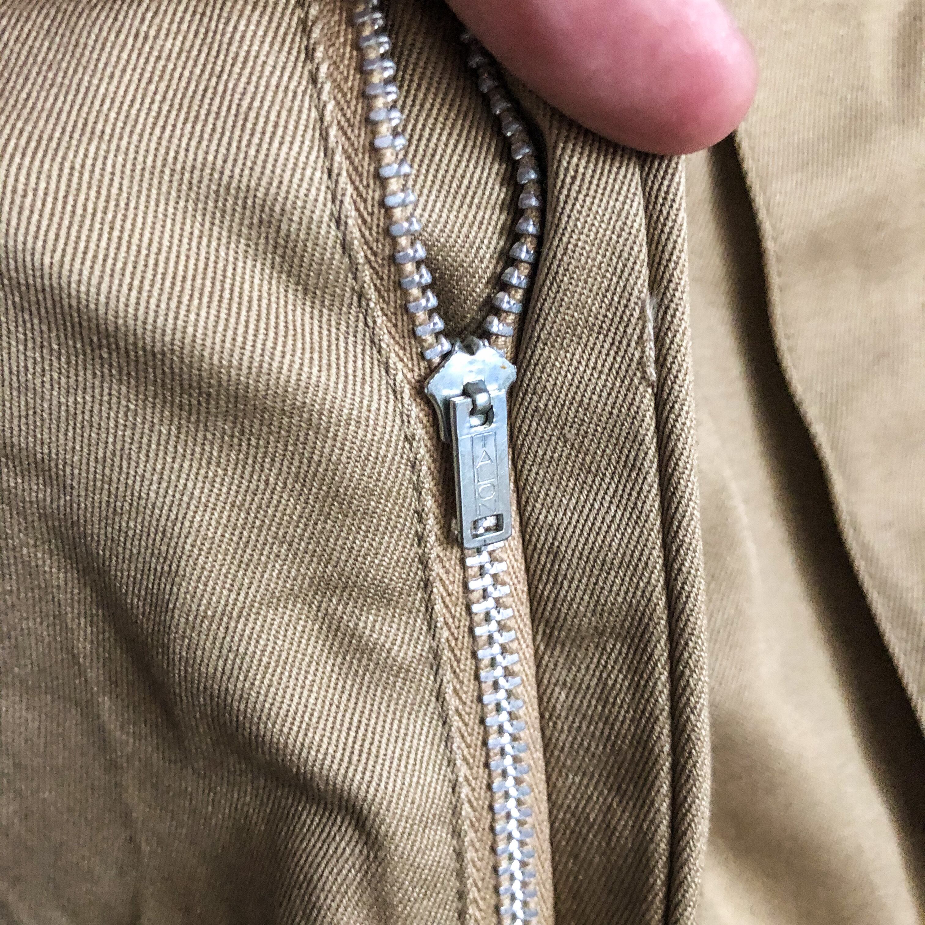 通称『軍チノ』にも使用されているUNIFORM TWILLと名付けられたチノクロスで仕立てられたこちらは、フロントに入るステッチ入りのセンタープリーツが特徴の稀少品。