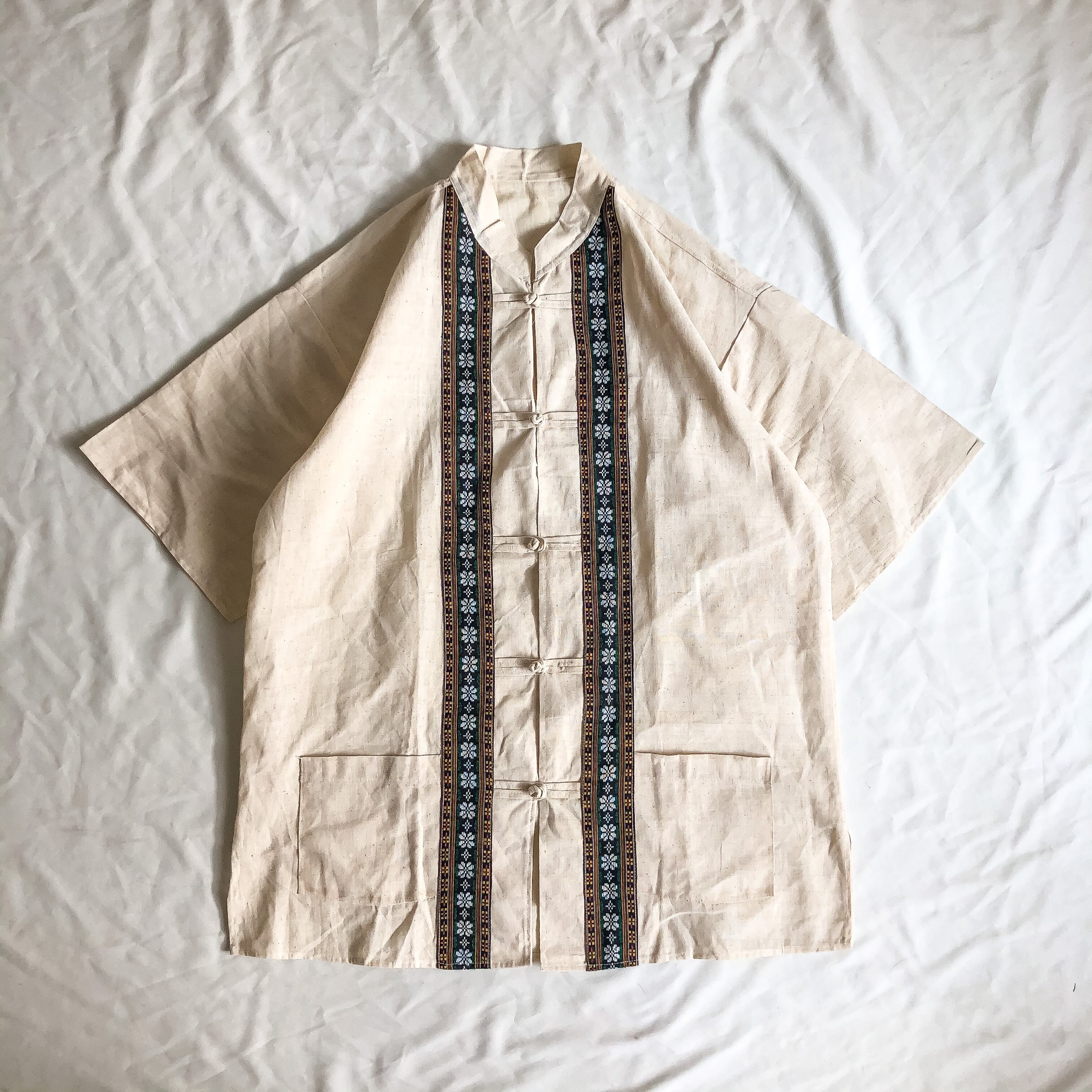 特徴 :爽やかな生成り系カラーの1970's~1980's頃のチャイナシャツ。