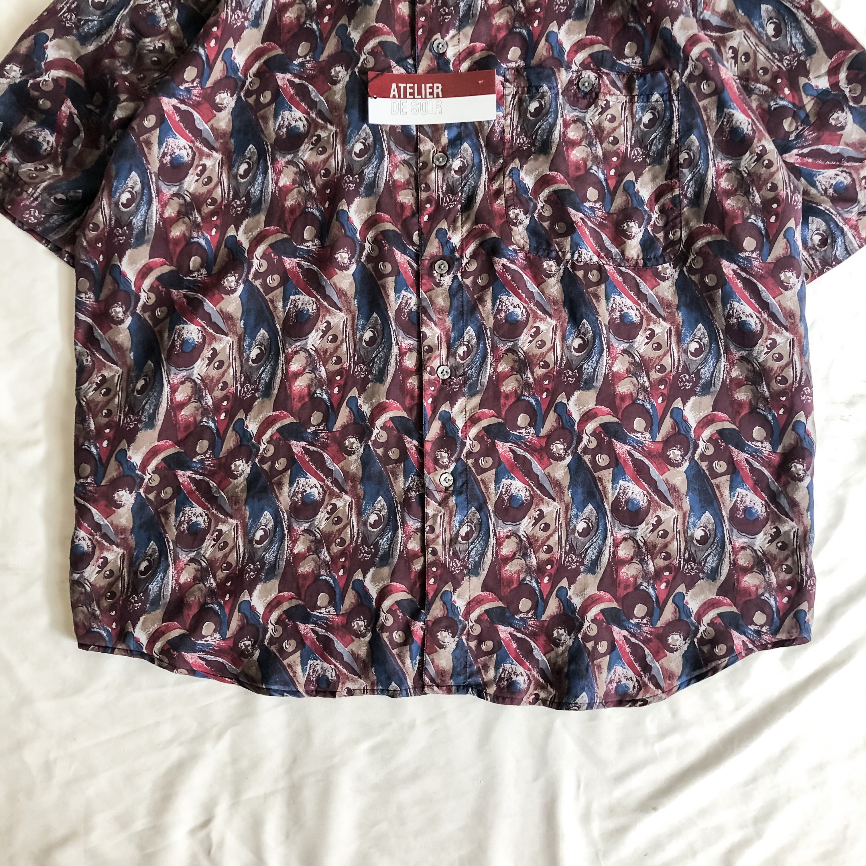 Dead stock! 1990's~ bigsize patterned allover s/s silk shirt