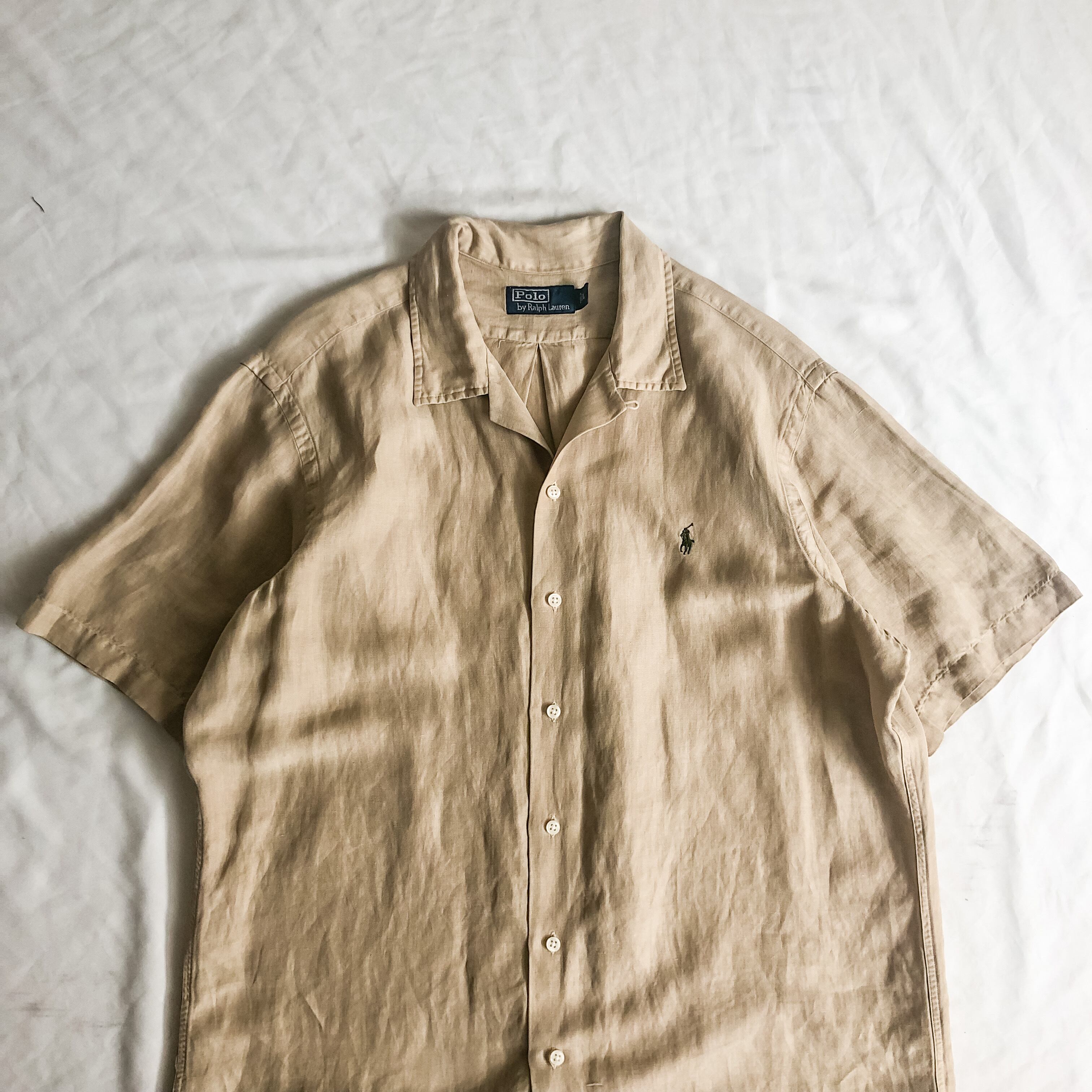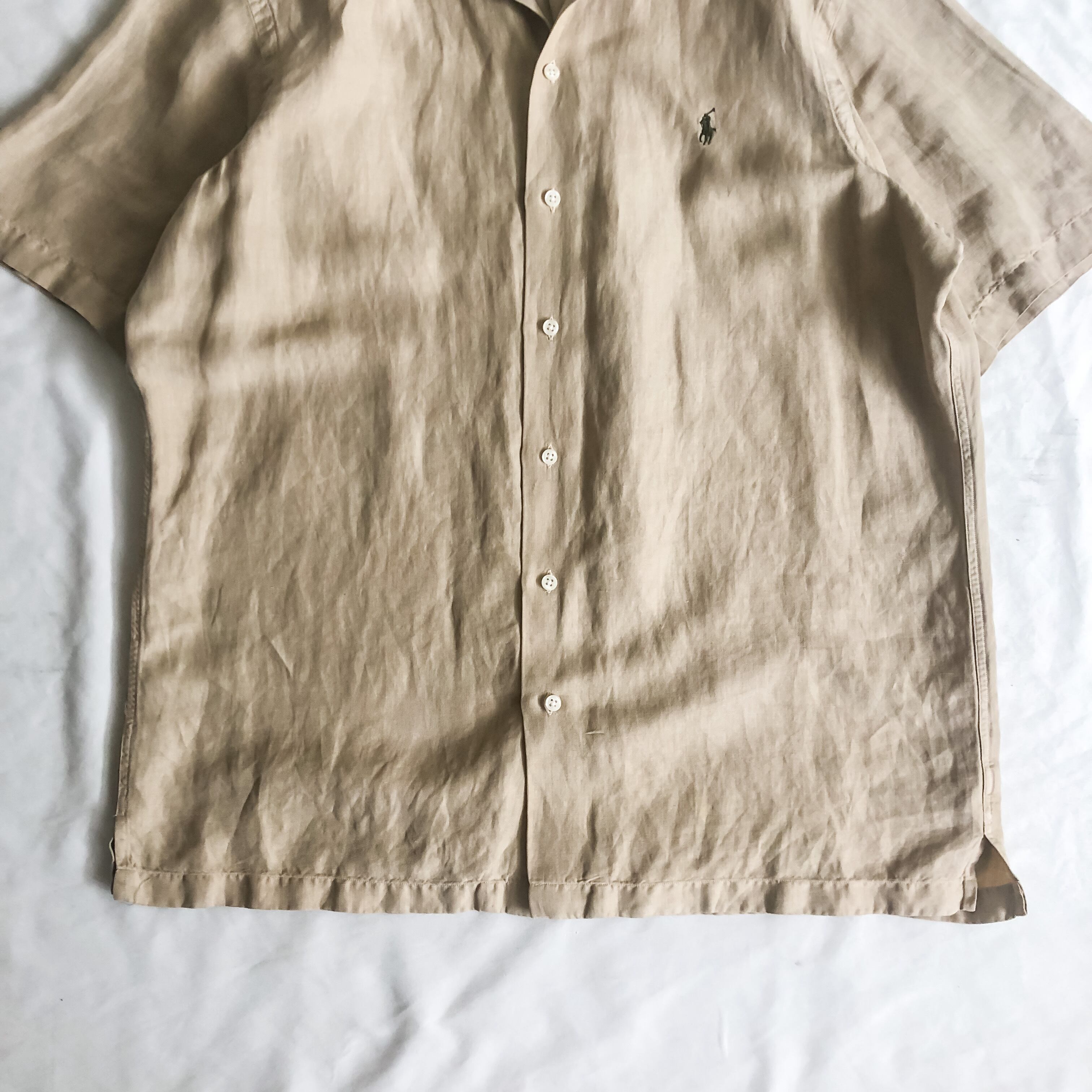 1990's~ Polo Ralph Lauren open collar silk×linen S/S shirt