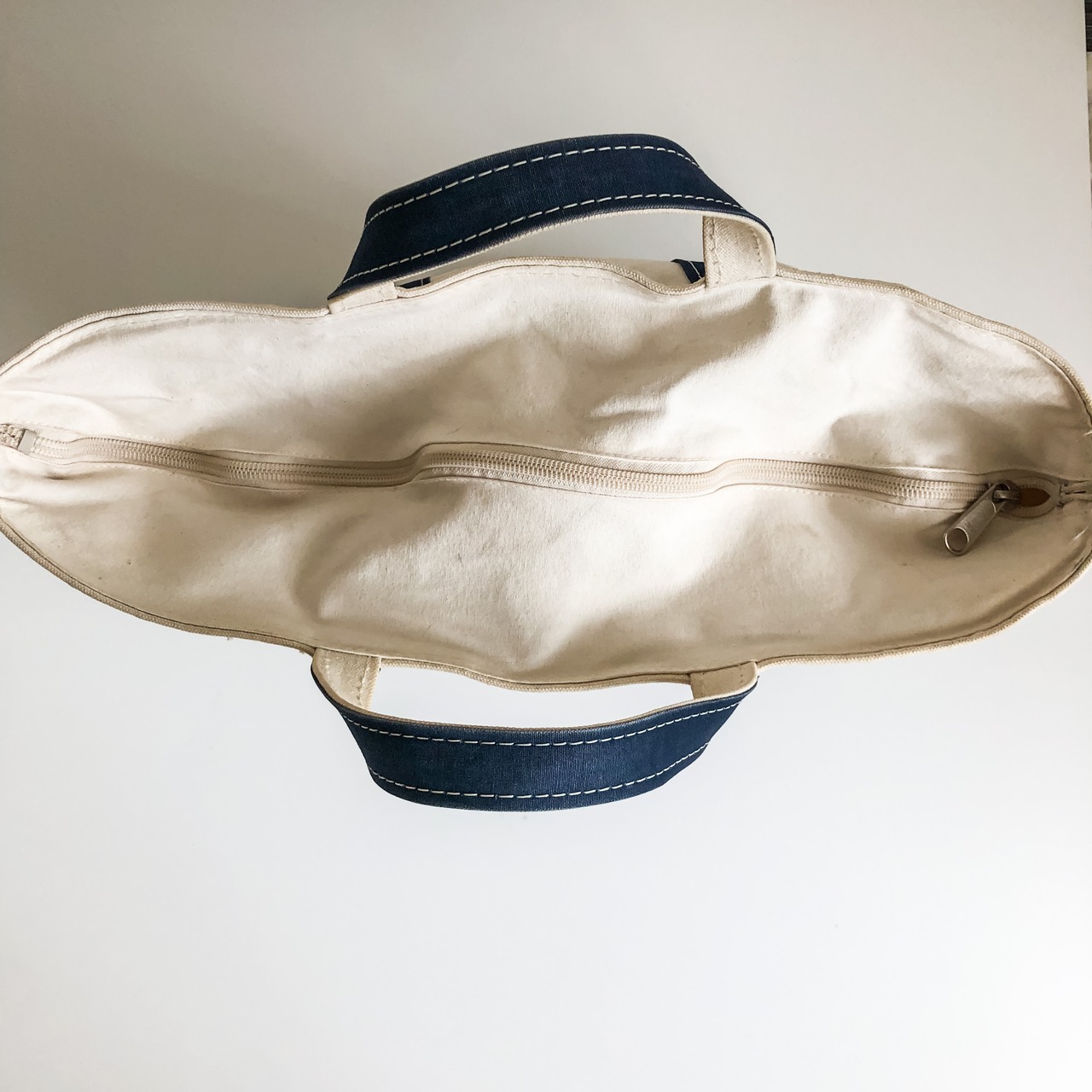 定番な生成り×ネイビーカラーに、大きめで容量もしっかりと入るLargeサイズ。