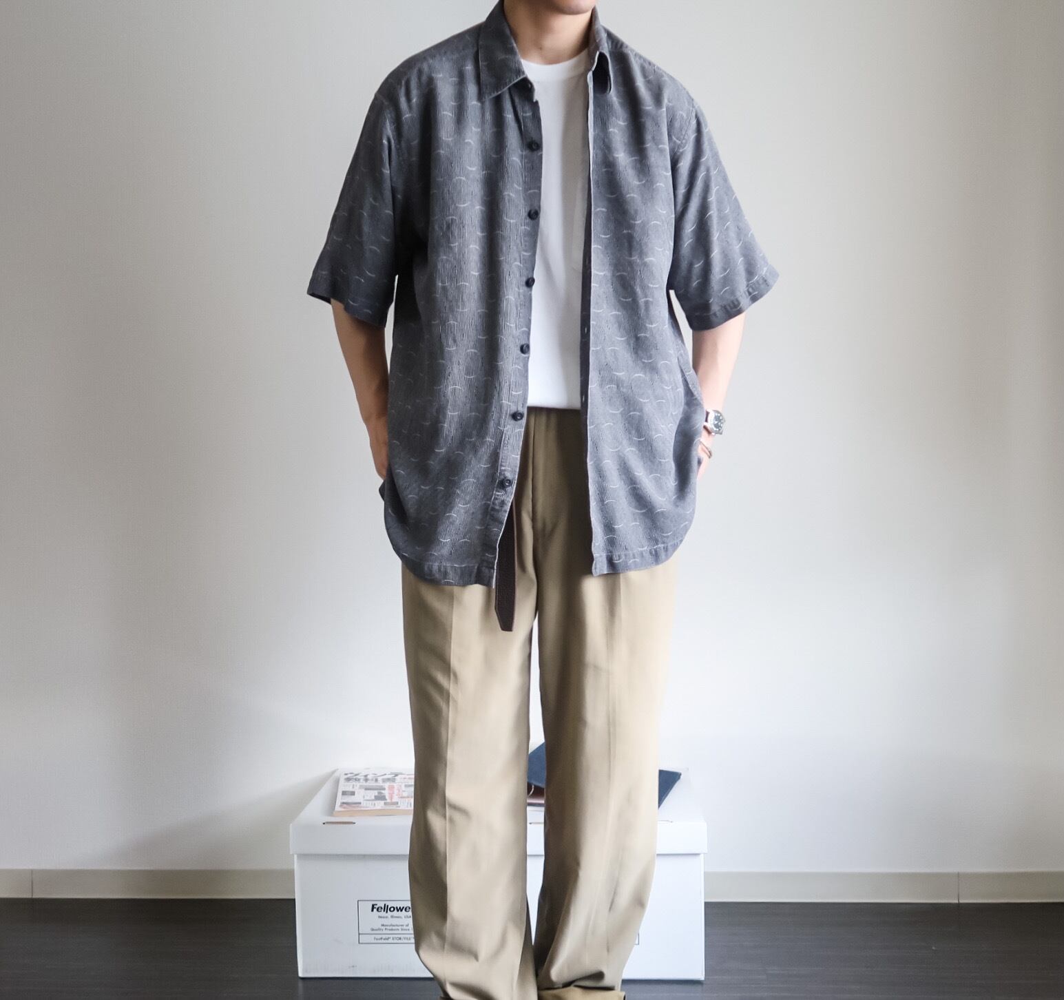 特徴 :古着らしい独特なドット状のテキスタイルがgoodな1990's~頃のシルクシャツ。