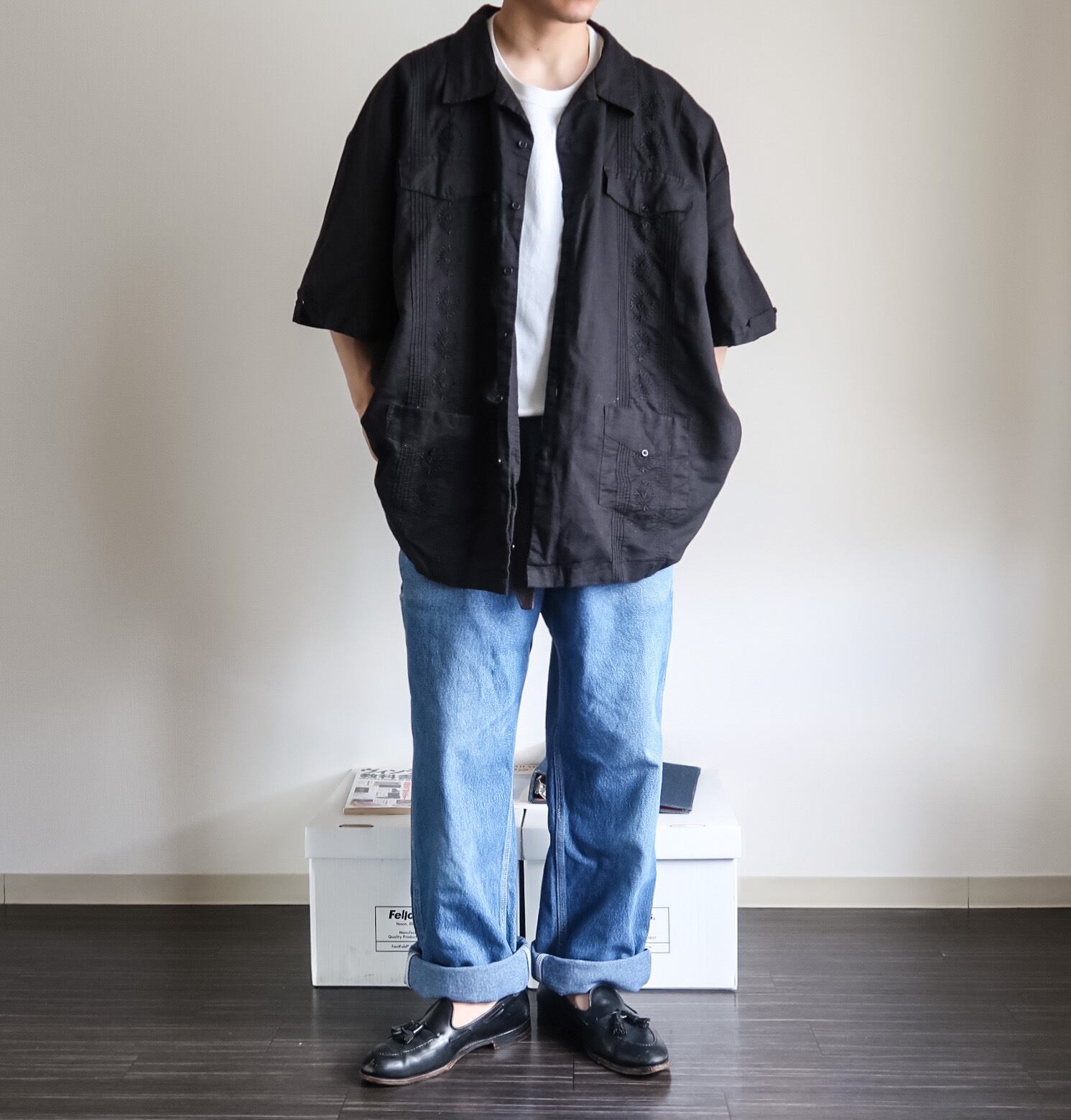 特徴 :4つポケにプリーツや刺繍などが入るスーパービッグサイズなキューバシャツ。