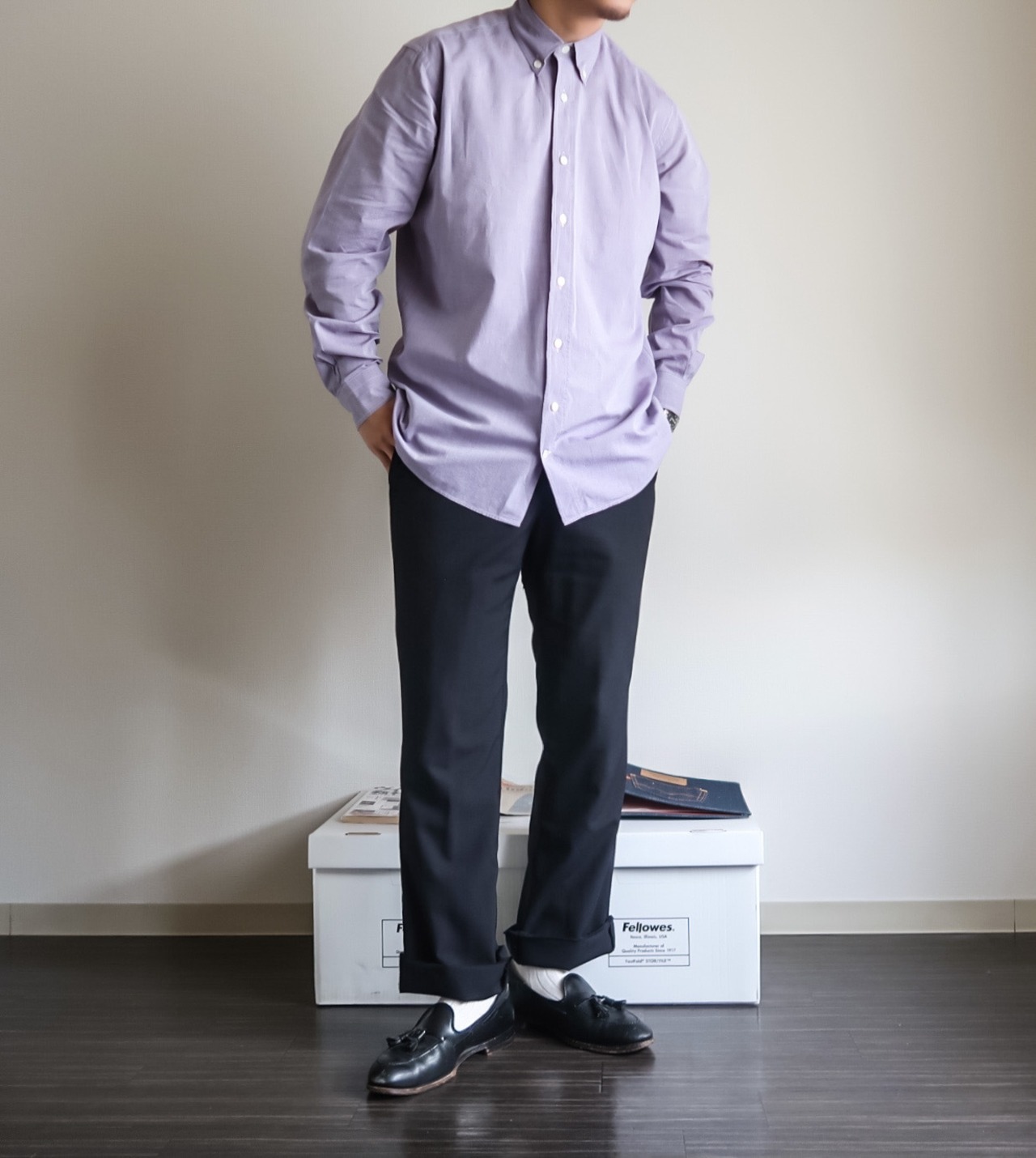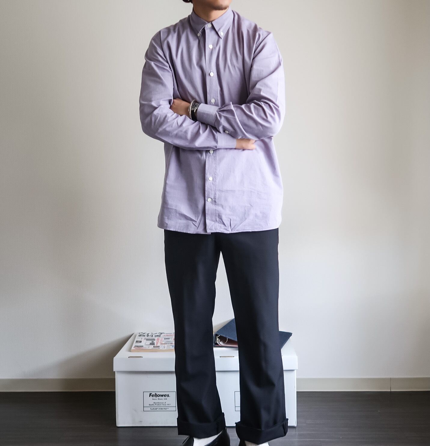 ボタンダウンシャツでは珍しいパープル系のカラー。