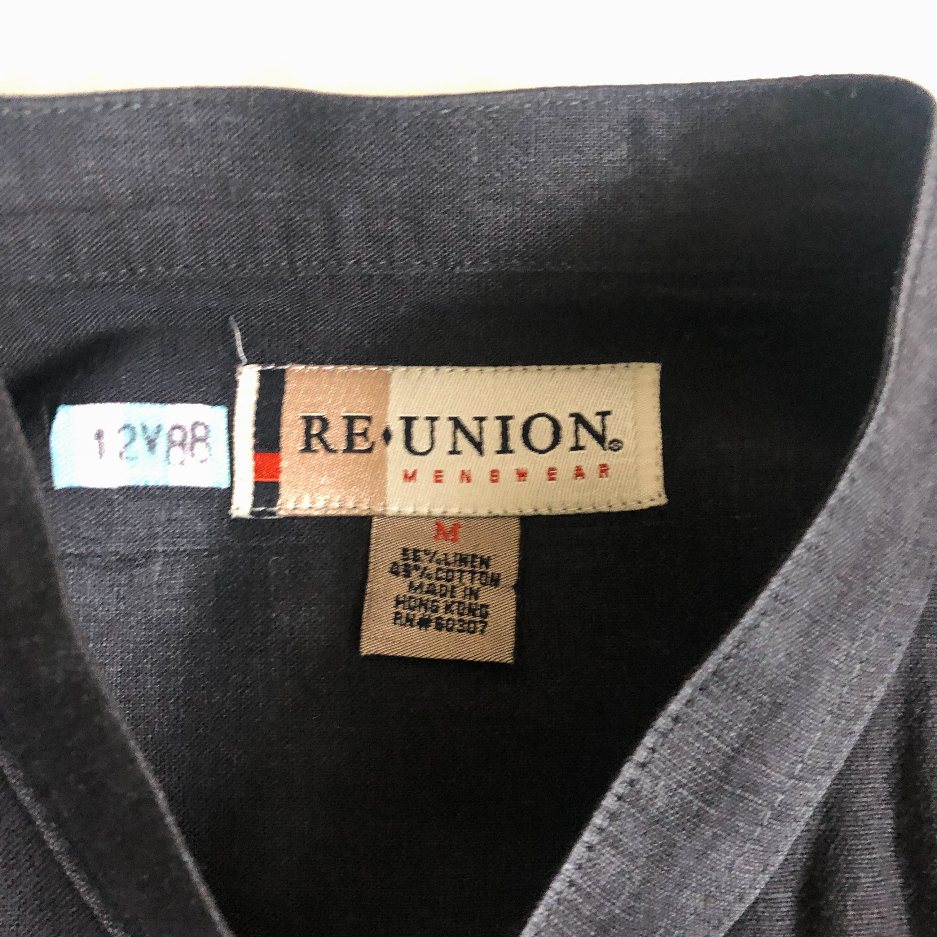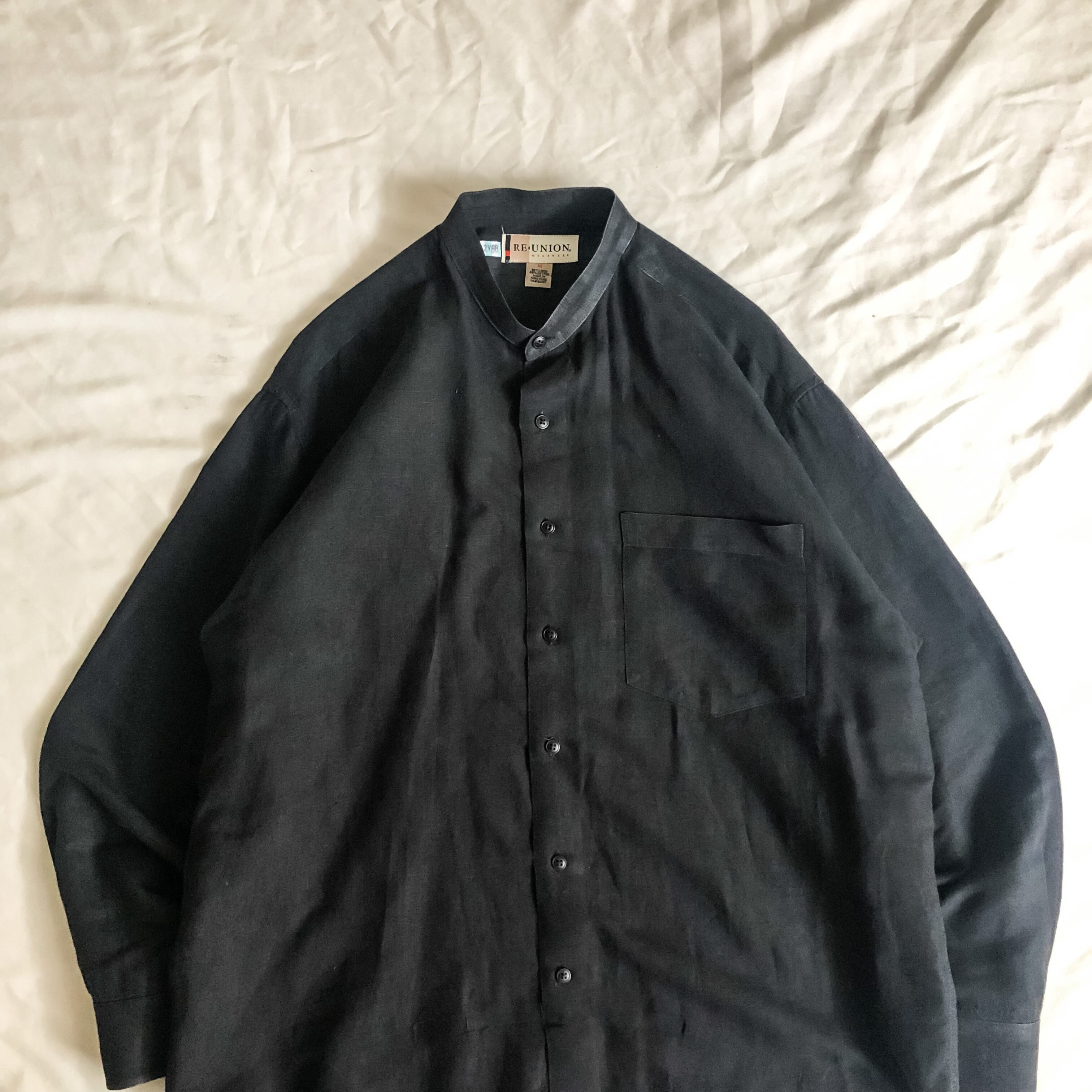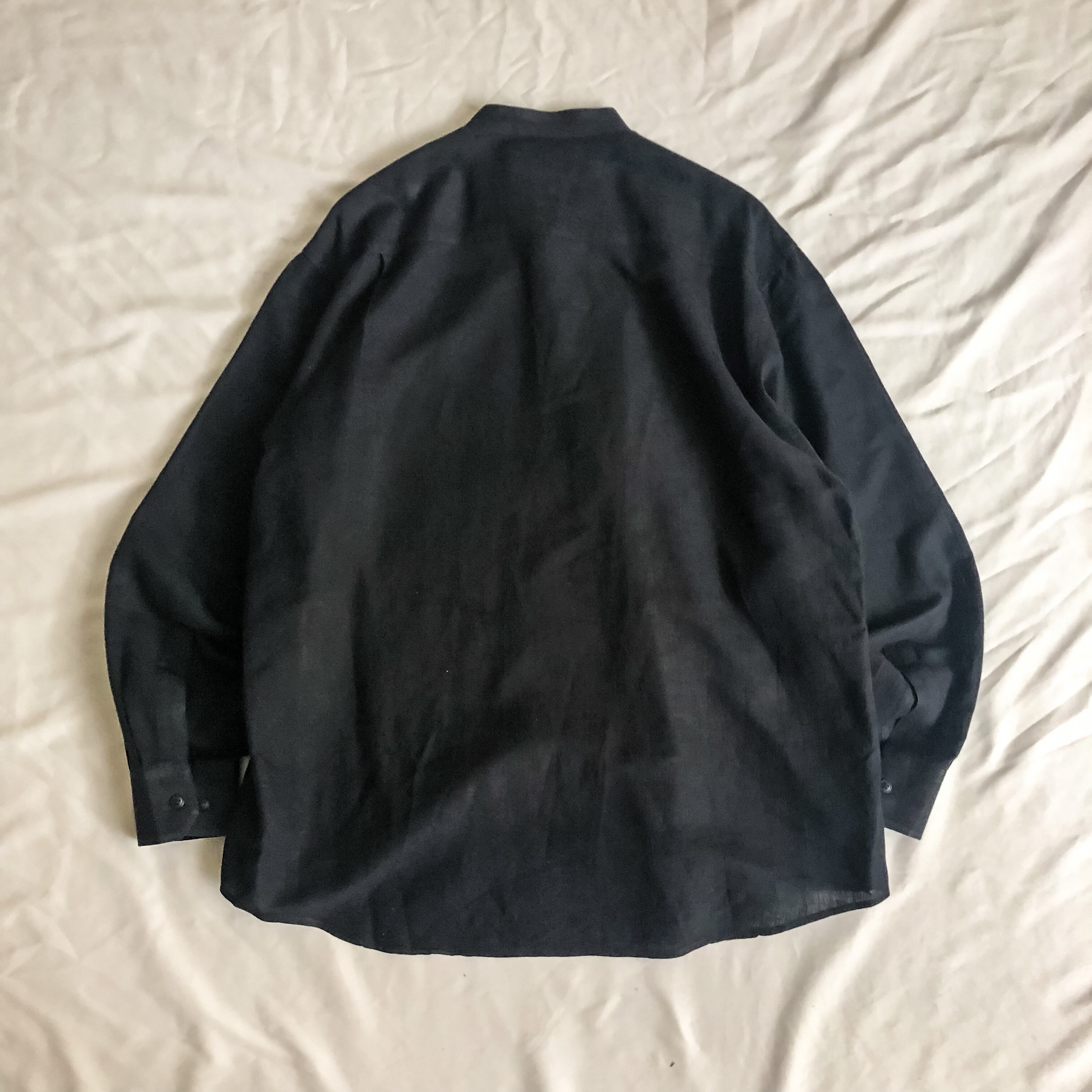 1990's~ black linen×cotton band collar shirt
