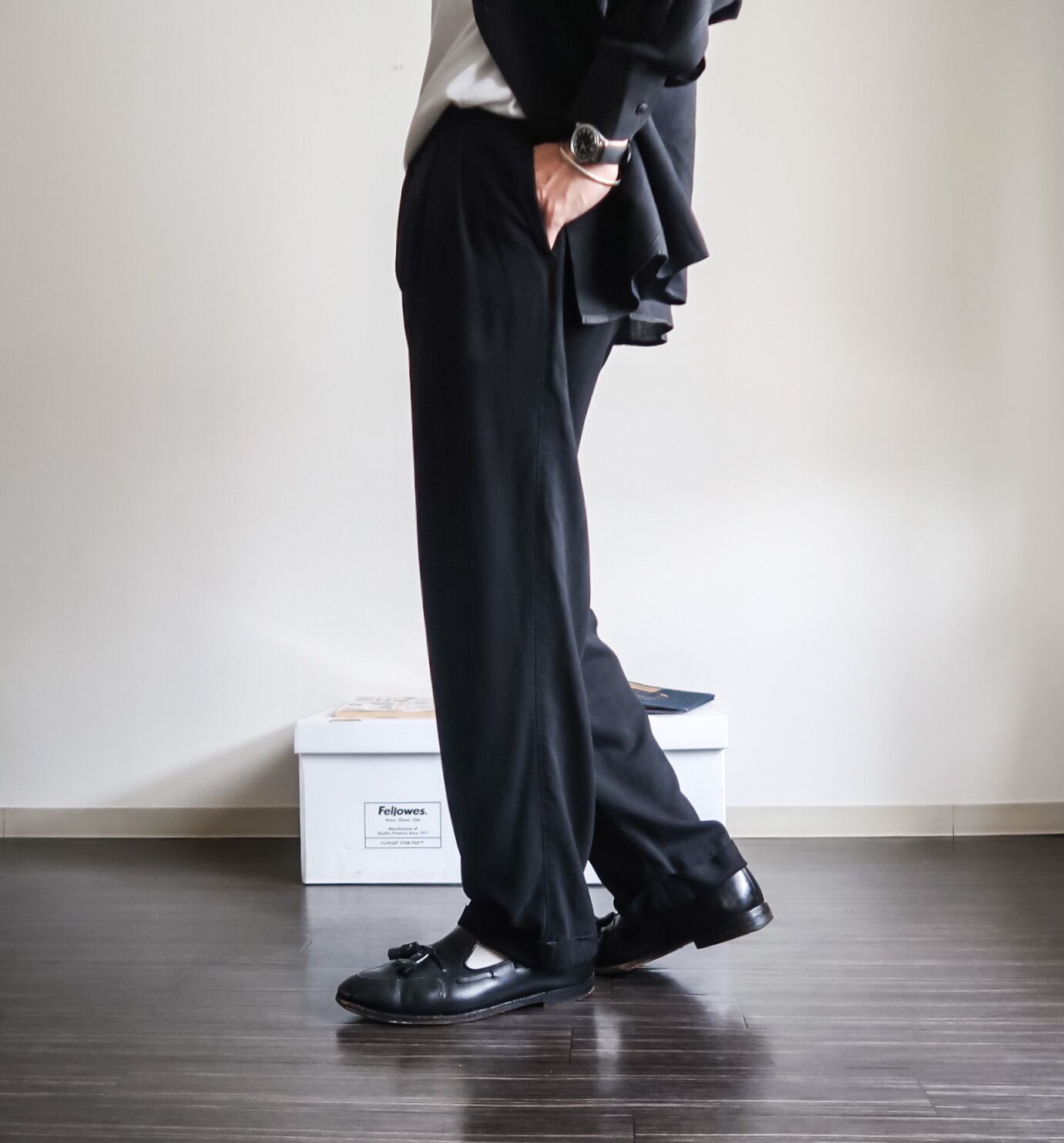 デザイナーズブランドでこの素材でスラックスを作るとなると値段も間違いなく手が届きづらい価格になるかと思いますので、この価格で買えるのも古着の魅力かと思います。
