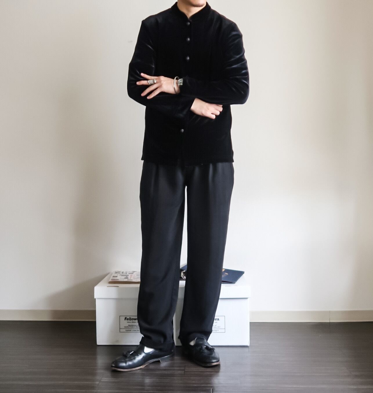 深みのあるブラックのベロアはかなりクールなアイテムだと思います。