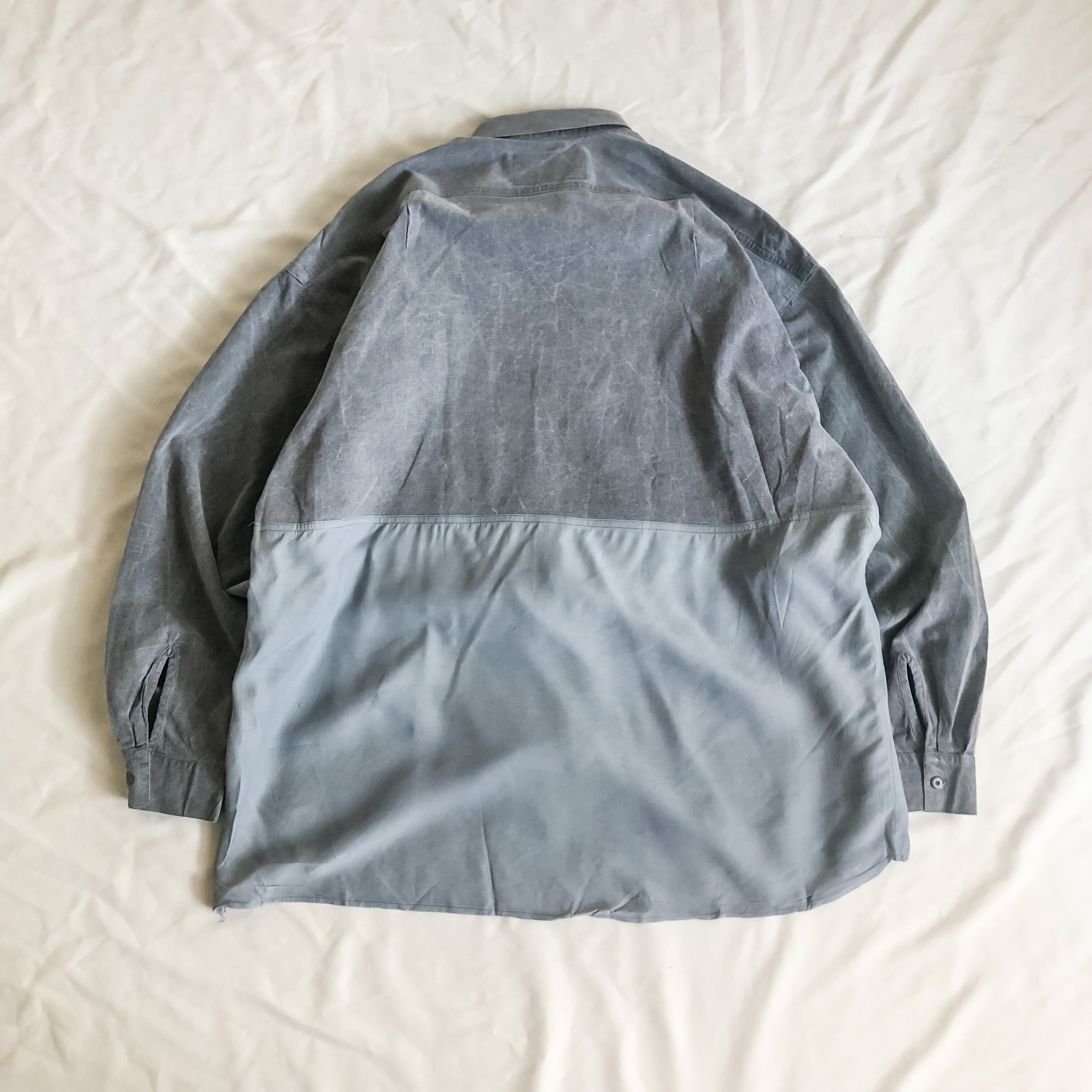 1980's~ switching design stonewash×silk shirt made in USA