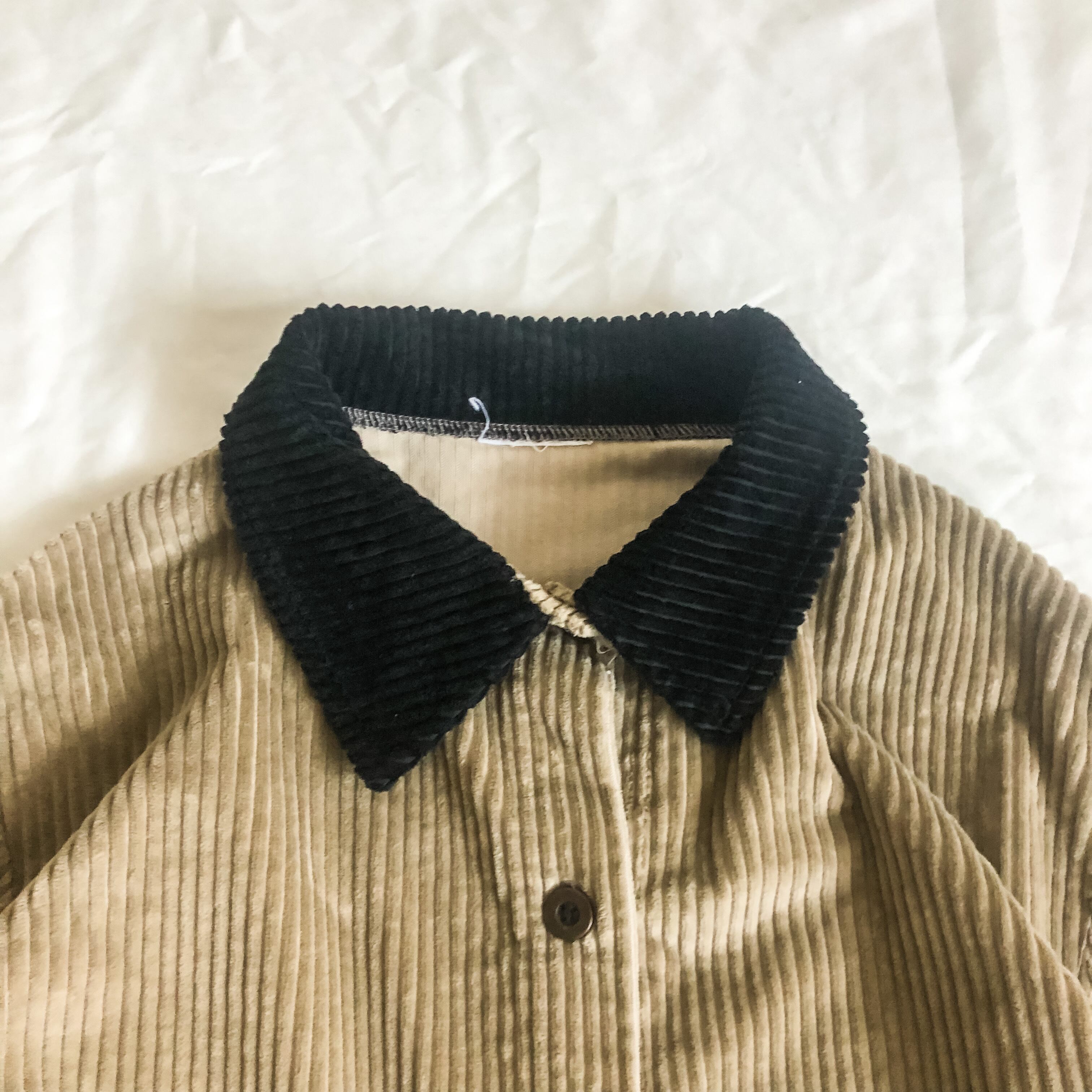珍しい襟だけブラックのコーデュロイに切り替わったデザイン。