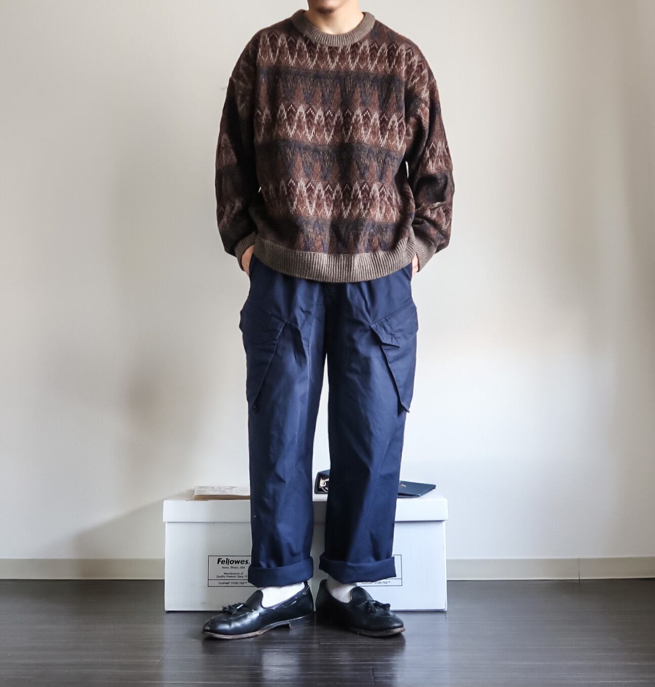 柄や配色も派手すぎず、総柄セーターの中でも着ていただきやすいですね。