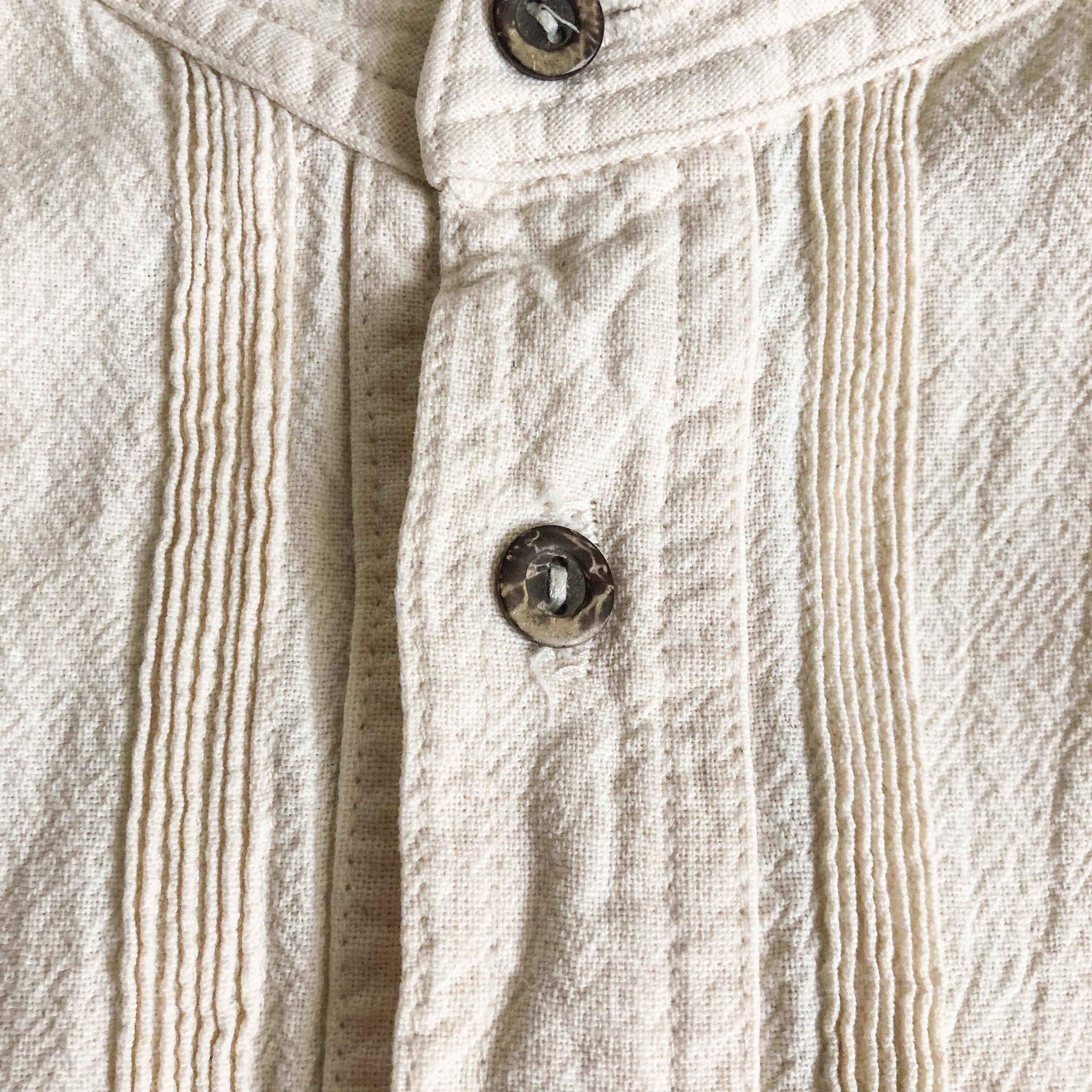 1980's~ ecru color pleats design band collar shirt