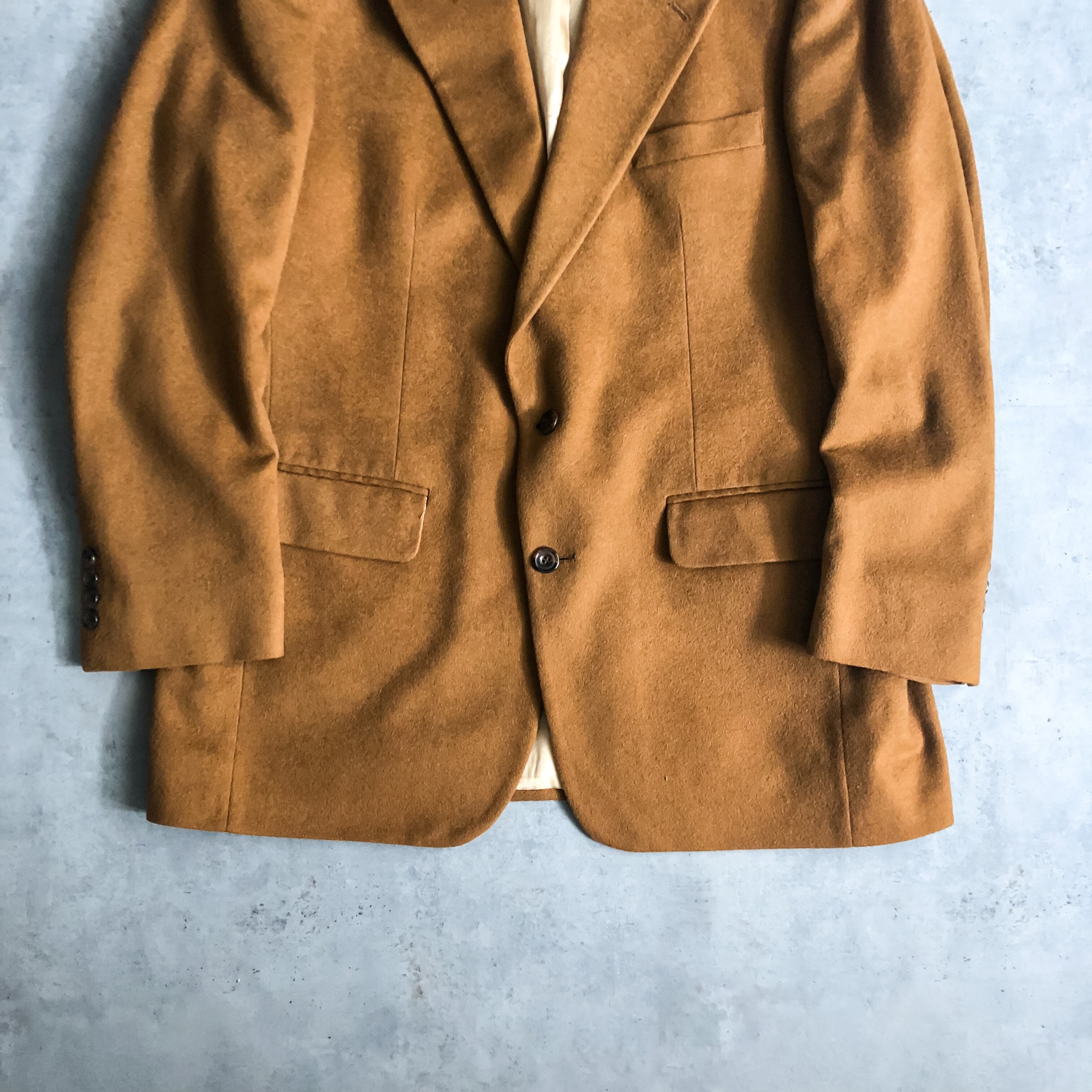カシミアにも引けを取らない肌触りの良い質感に、キャメルのようなカラーで2ボタン仕様のクールなテーラードジャケットです。