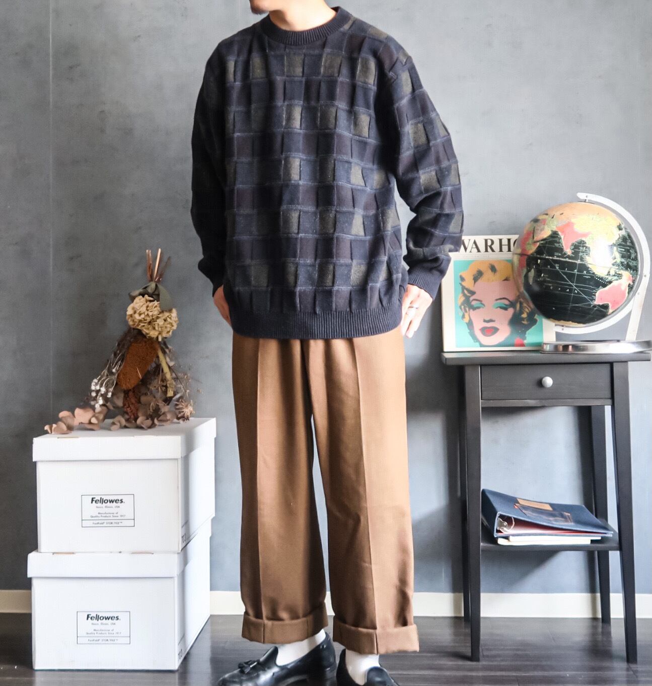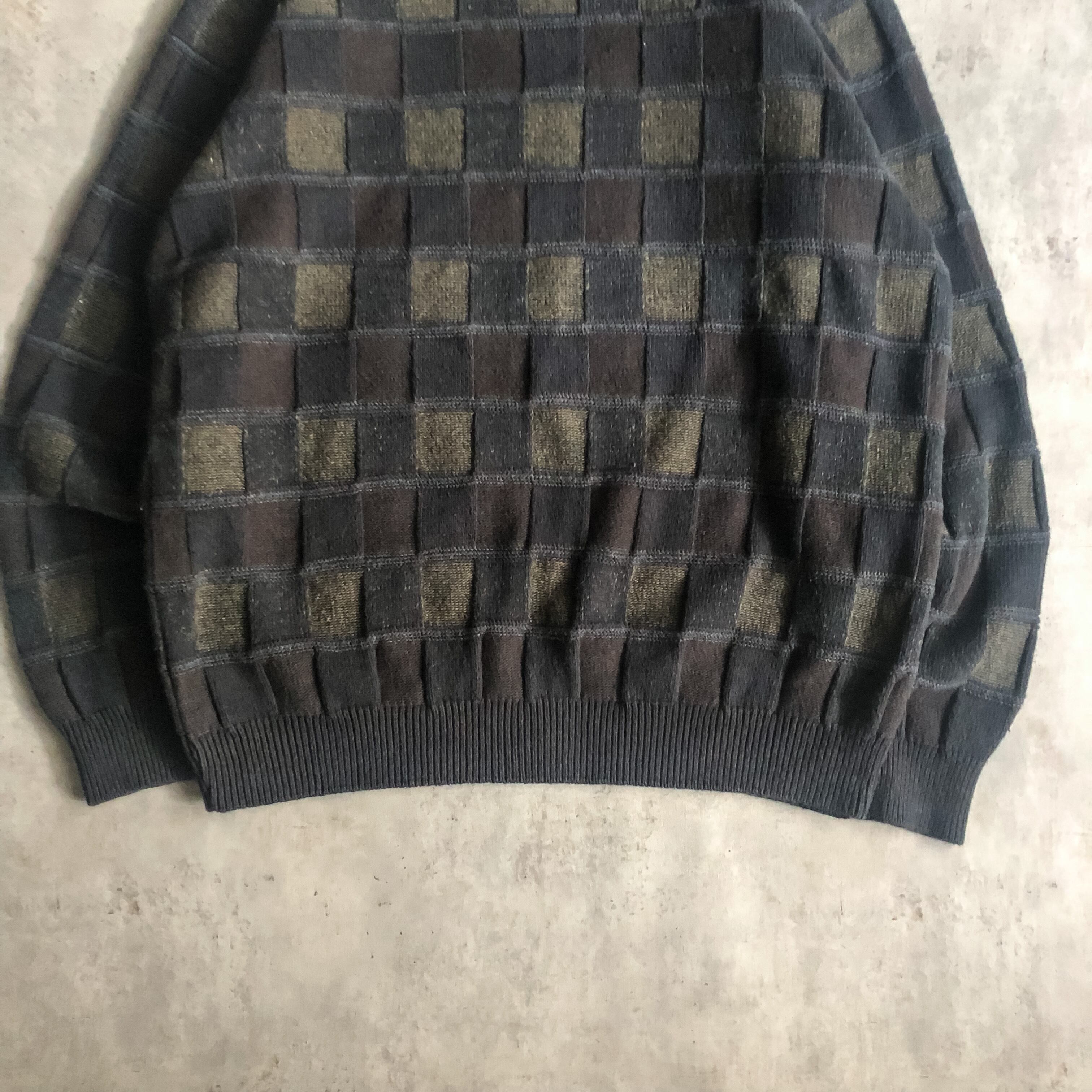 特徴 :立体的なチェック柄のパターンで編まれた1990'sのデザインセーター。