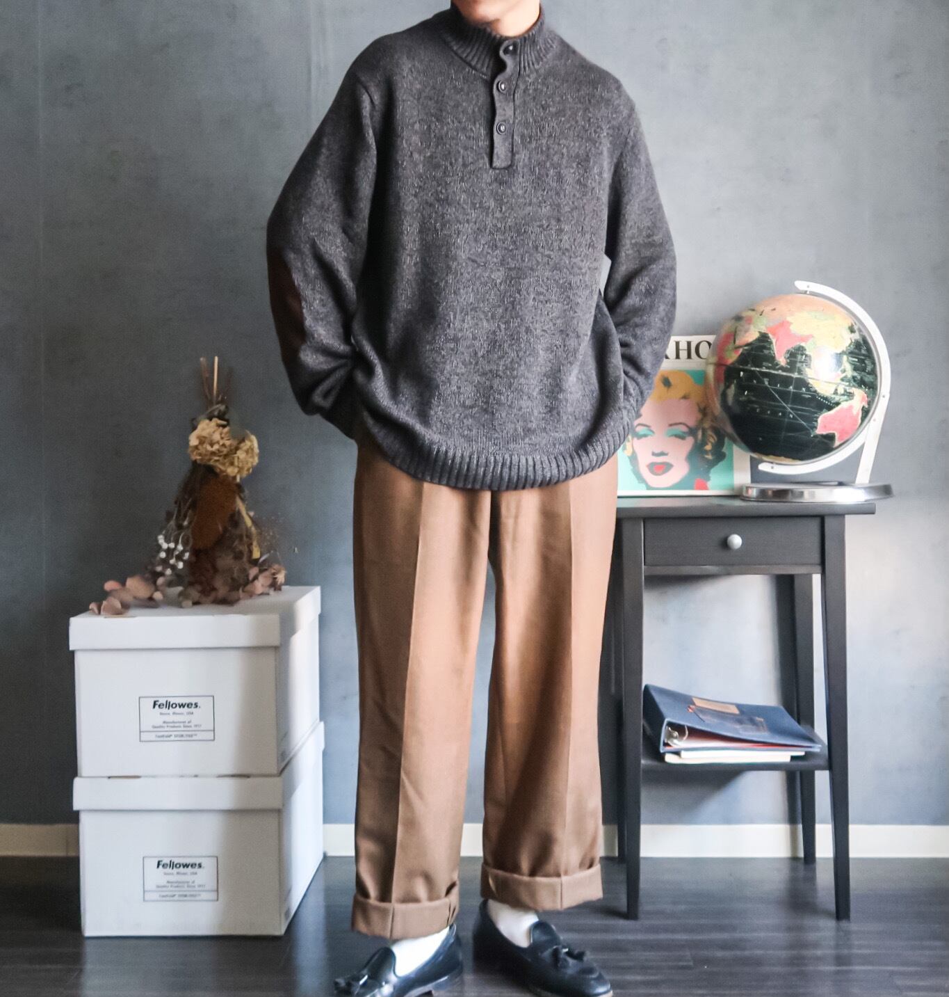 2000's~ Ralph Lauren "CHAPS" highneck cotton sweater with elbow patch