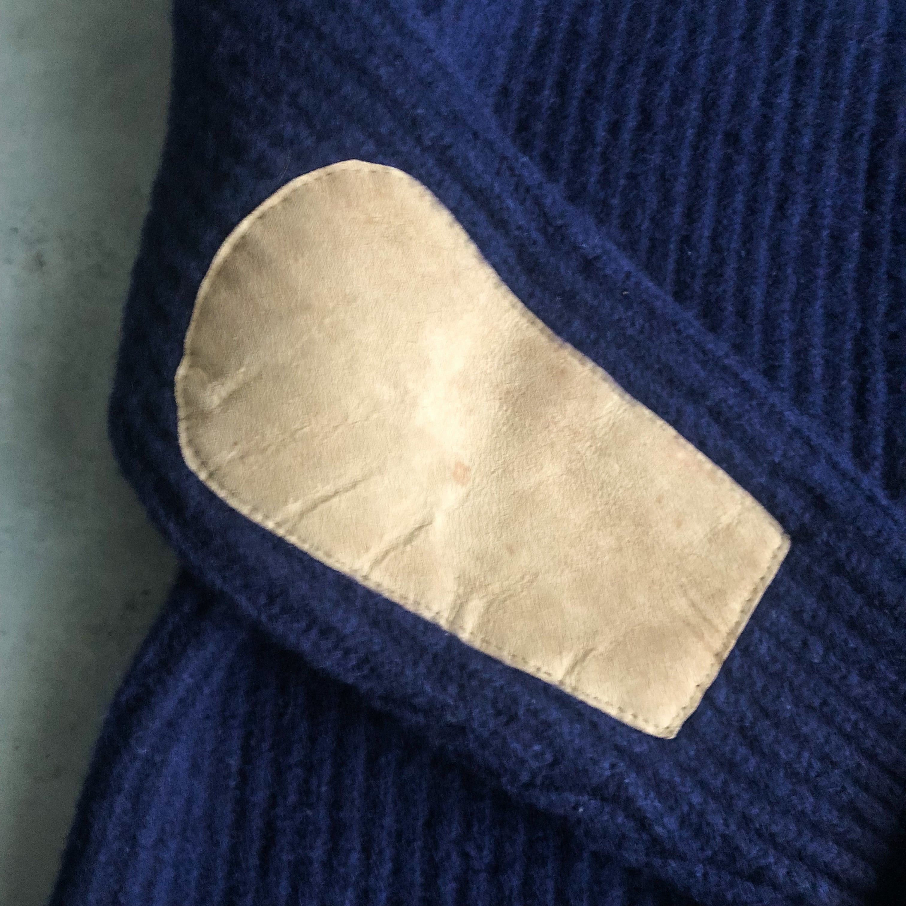 少し詰まり気味のネックに、コマンドーセーターのような肩と肘にスエードのパッチワークが付く素晴らしいデザイン。