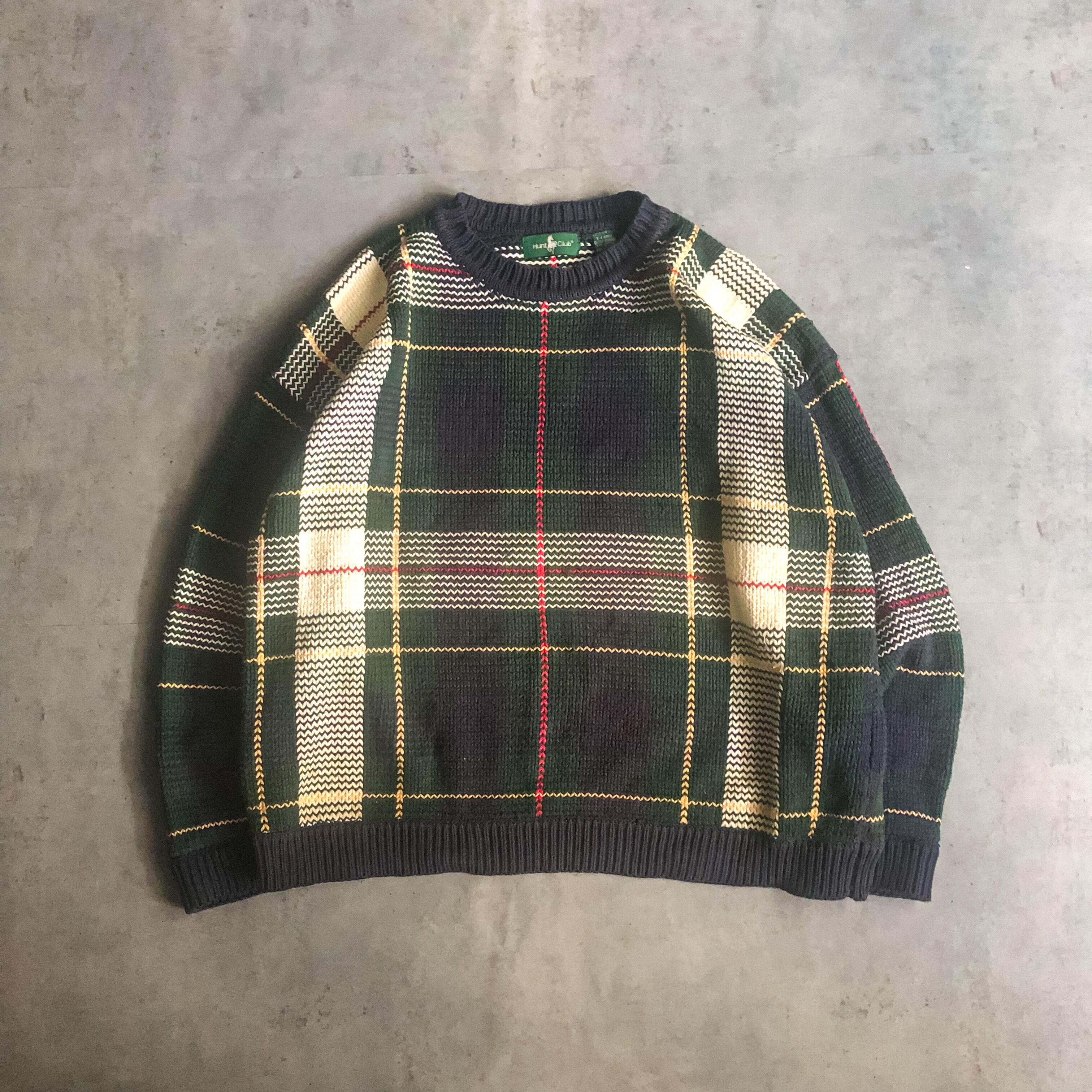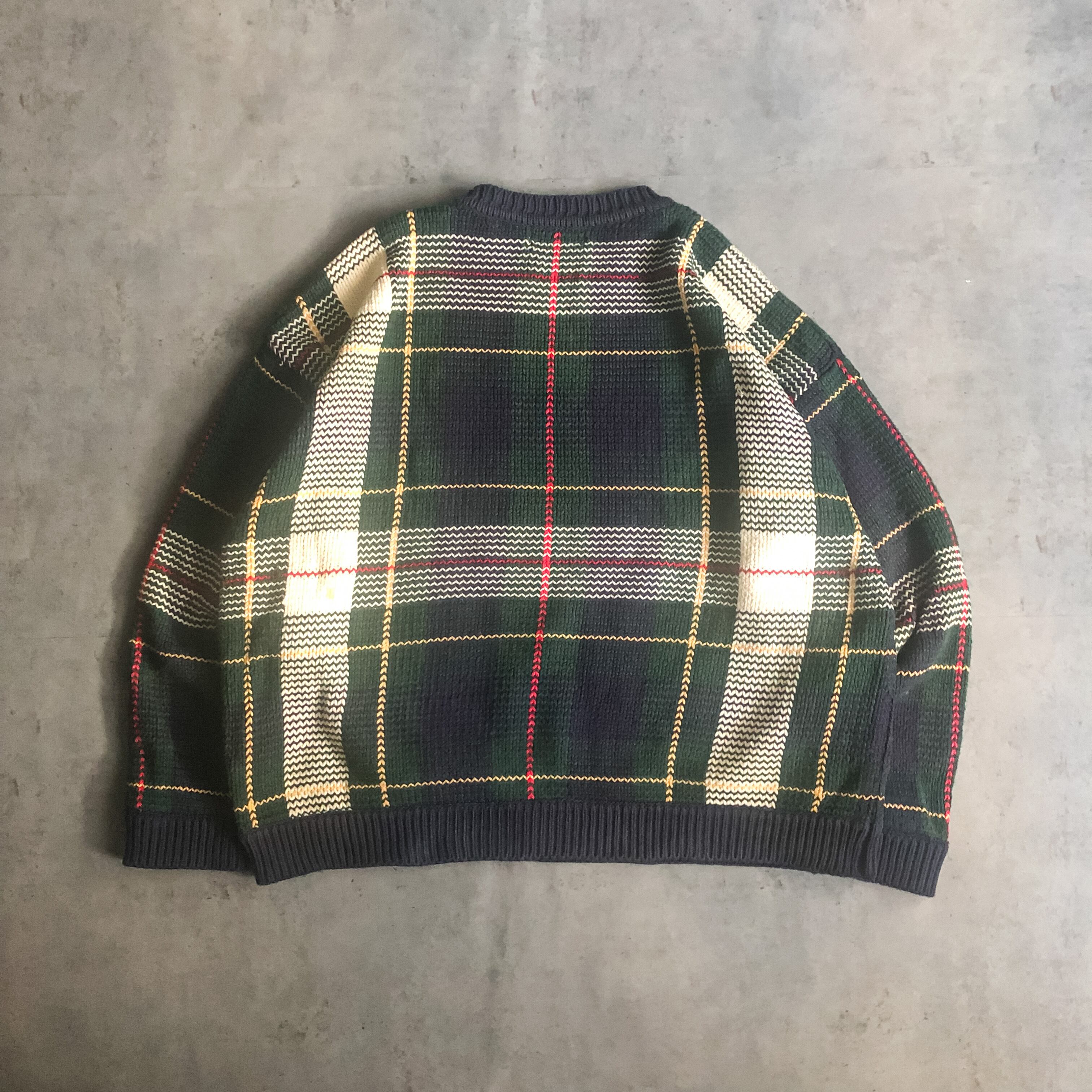 1990's Hunt Club bigsize plaid pattern cotton sweater