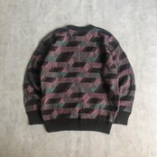 特徴 :独特な総柄のテキスタイルとレザーのパッチワークデザインが素晴らしい1990's頃のデザインセーター。