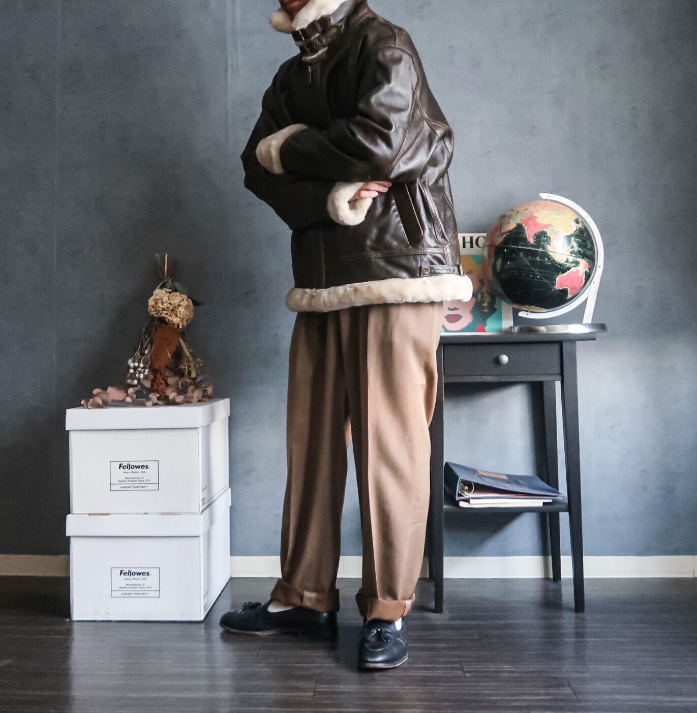 配色もシブいブラウンカラーのレザーとムートンのコンビネーション。