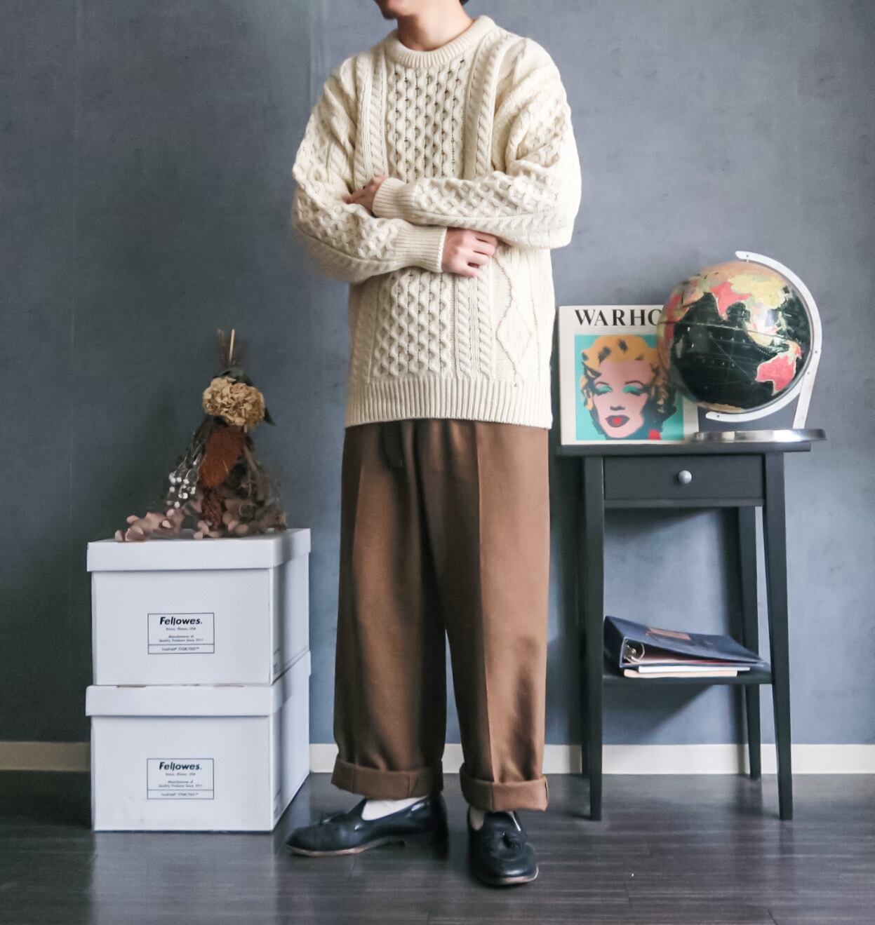 特徴 :希少なフラッシャー付きデッドストックのアランセーター。