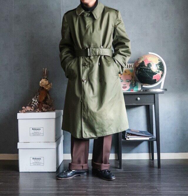 オーバーコートは今フランス軍のモーターサイクルコートが人気ですがまた違った良さがあり、全く引けを取らない存在感のあるコートだと思います。