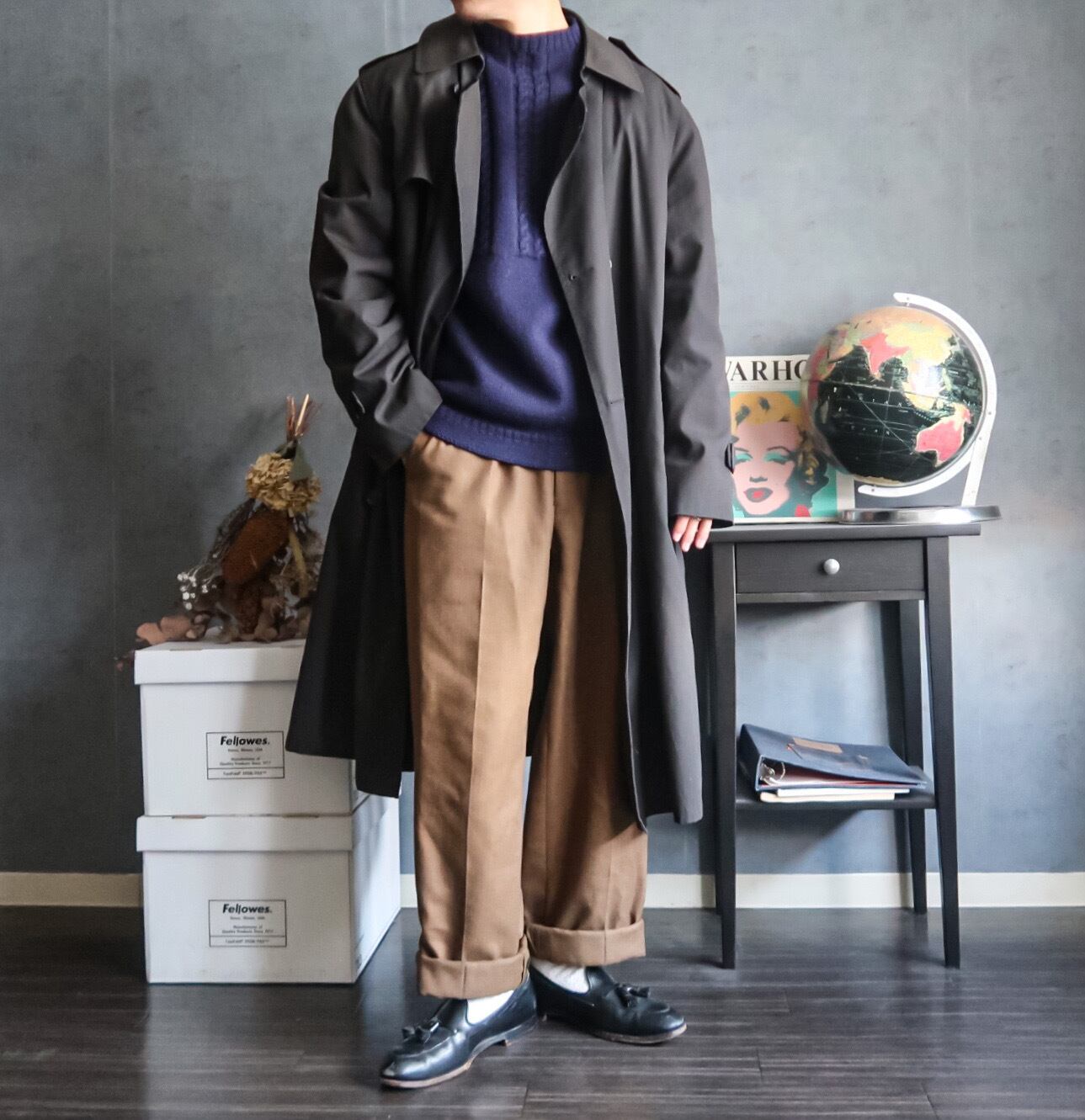 特徴 :ロング丈にブラックカラーがクールな1980's~頃のトレンチコート。