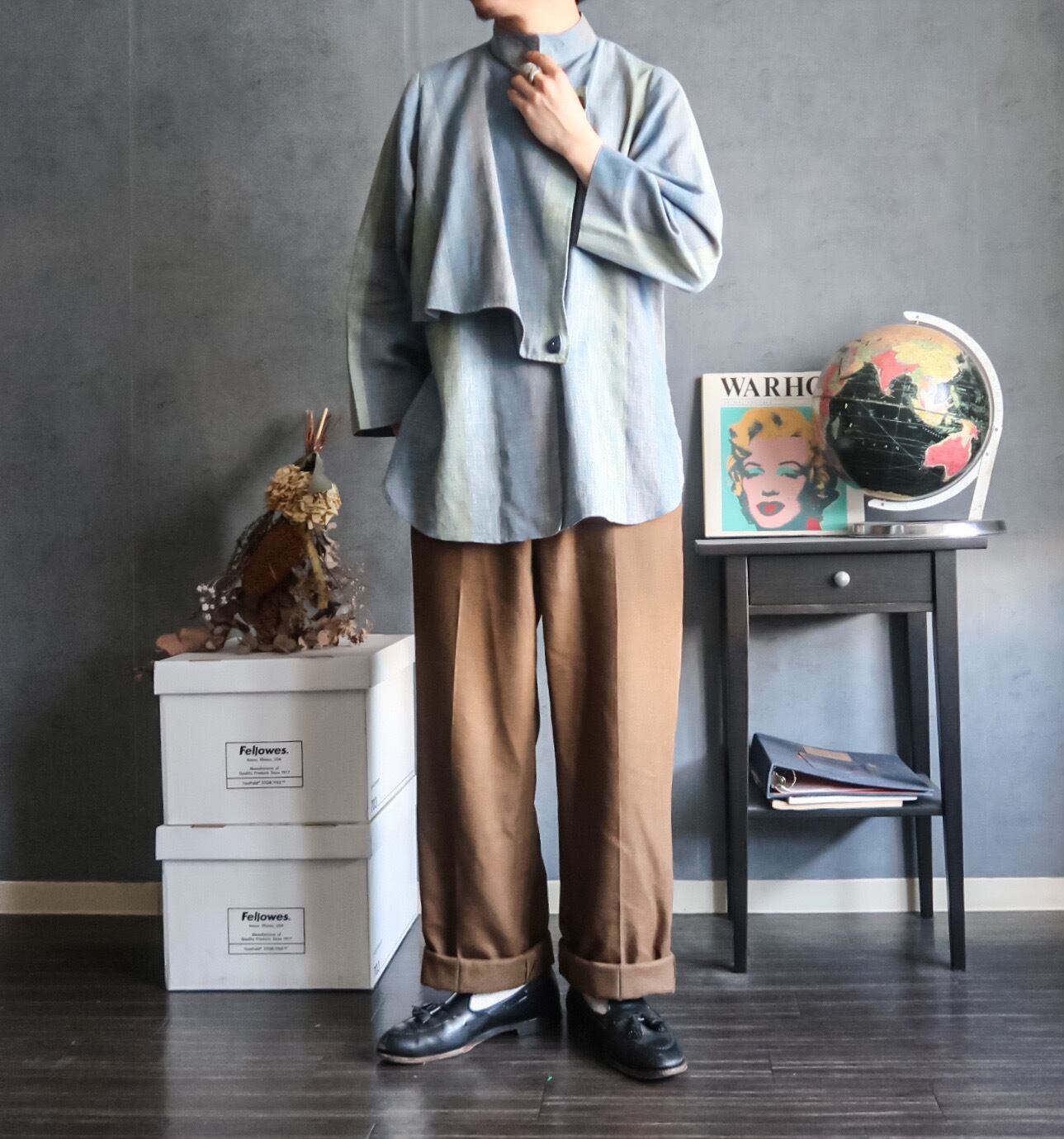珍しい襟の形状とフロントのボタン留めの変形デザインも素晴らしいですね。