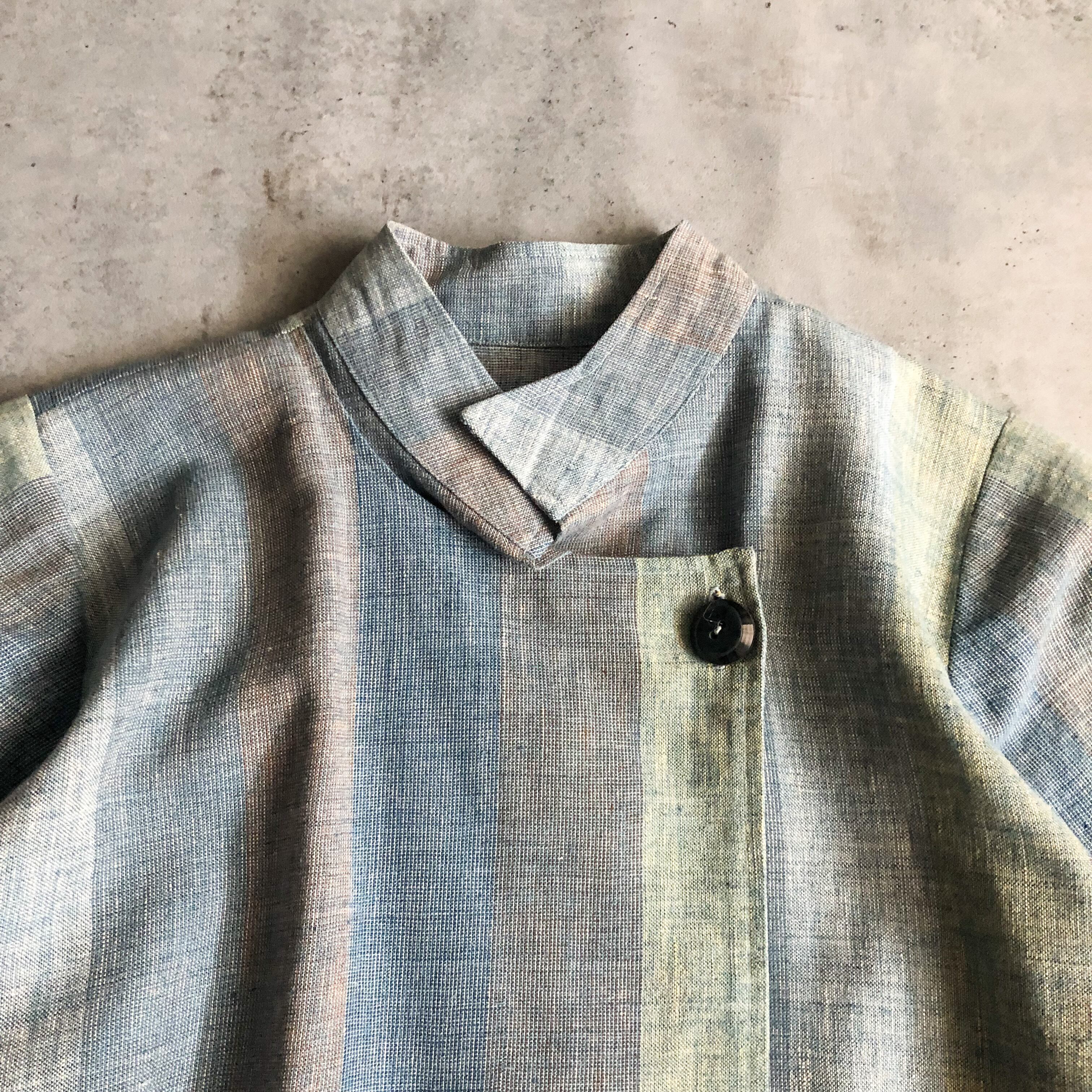 1980's~ stripe pattern deformation design linen shirt made in Brazil