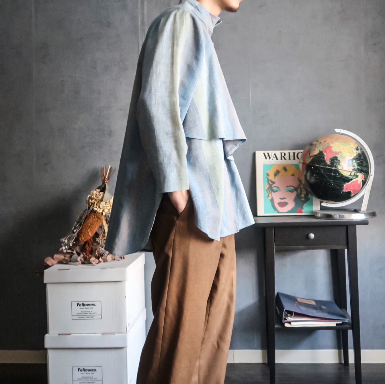 特徴 :1980's~頃のブラジルのデザイナーズの作品の変形リネンシャツ。