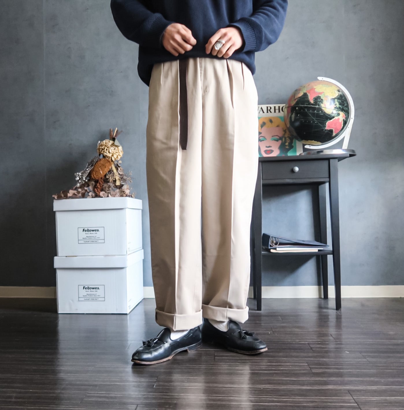 腰回りはゆったりで、裾に向かって緩やかにテーパードが効いている為穿きやすくて、今っぽく穿いて頂けるアイテムかと思います。