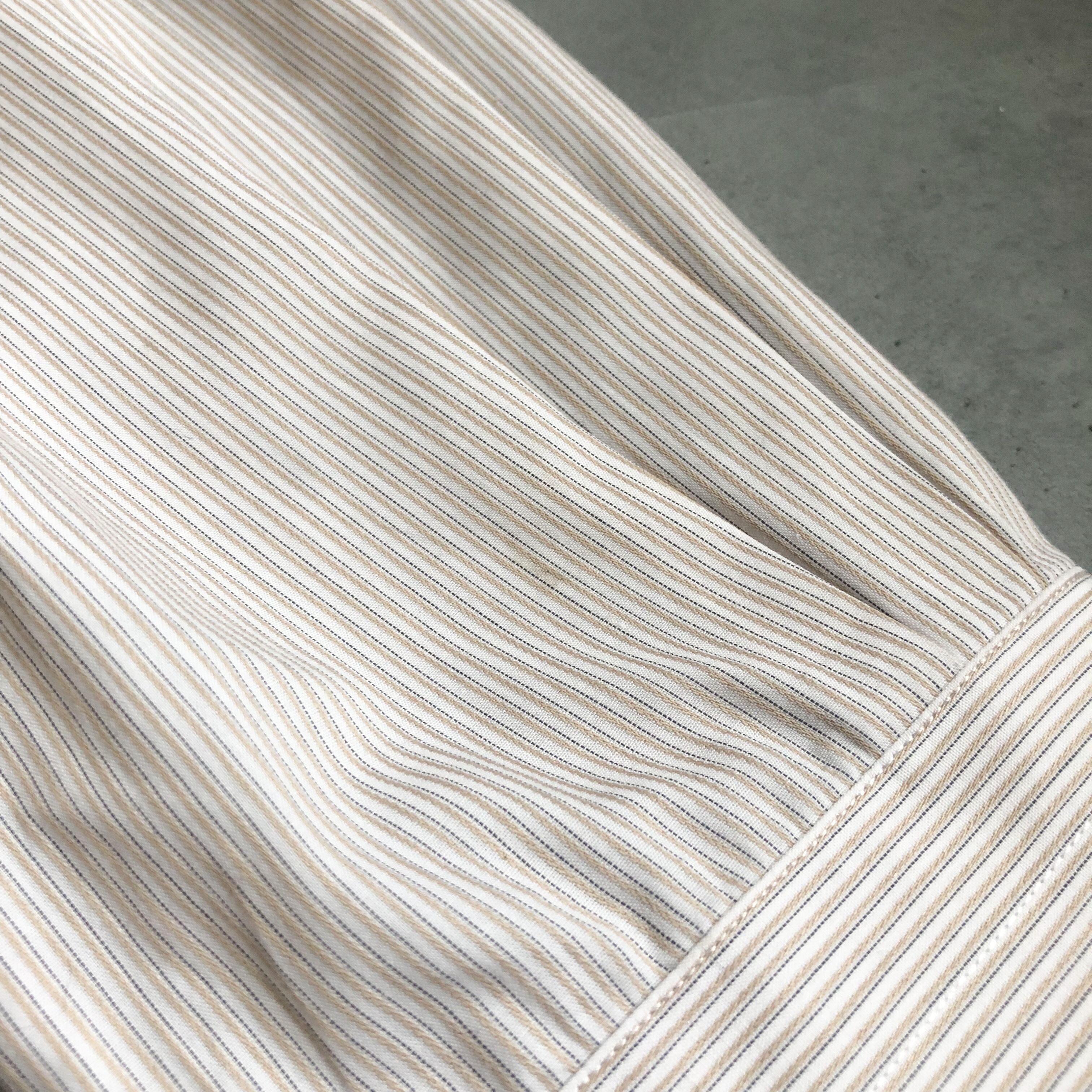オールコットンで春らしいホワイトベースの爽やかなストライプパターン。
