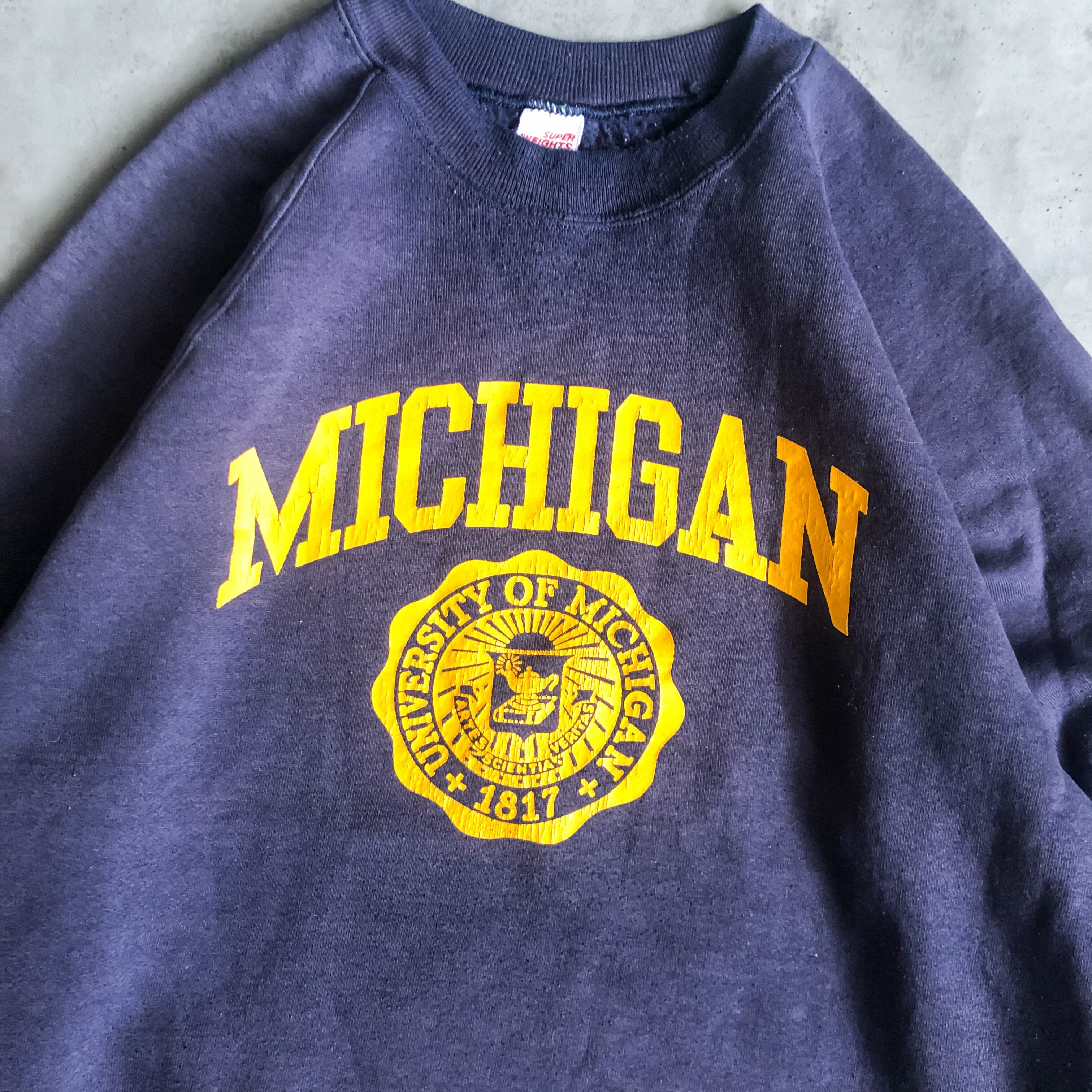 フロントにはカレッジスウェットの中でも人気の高いミシガン州のプリント。