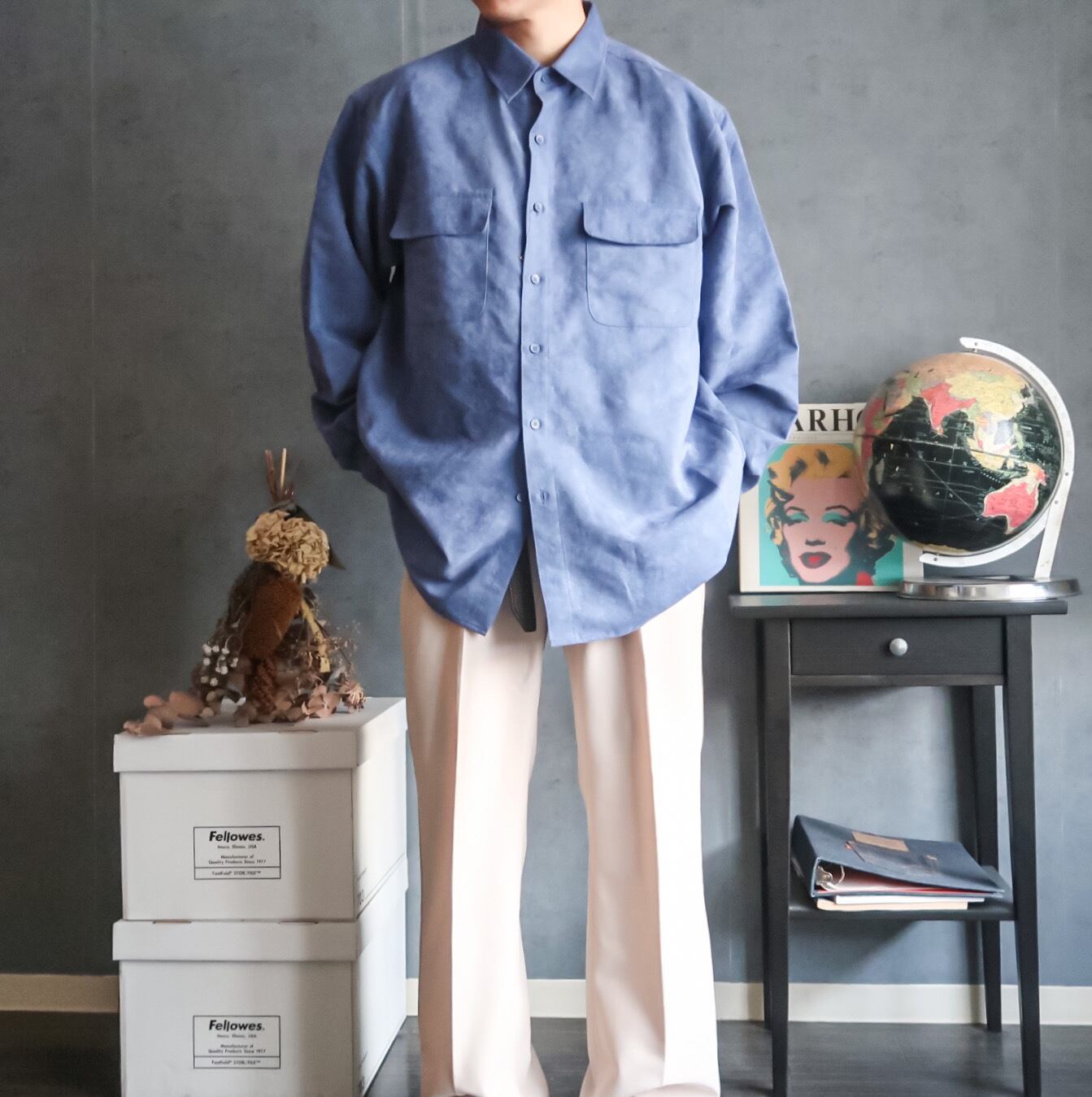 フェイクスエードシャツはポリエステルやコットンなどのシャツの中でも非常に存在感のあるアイテム。