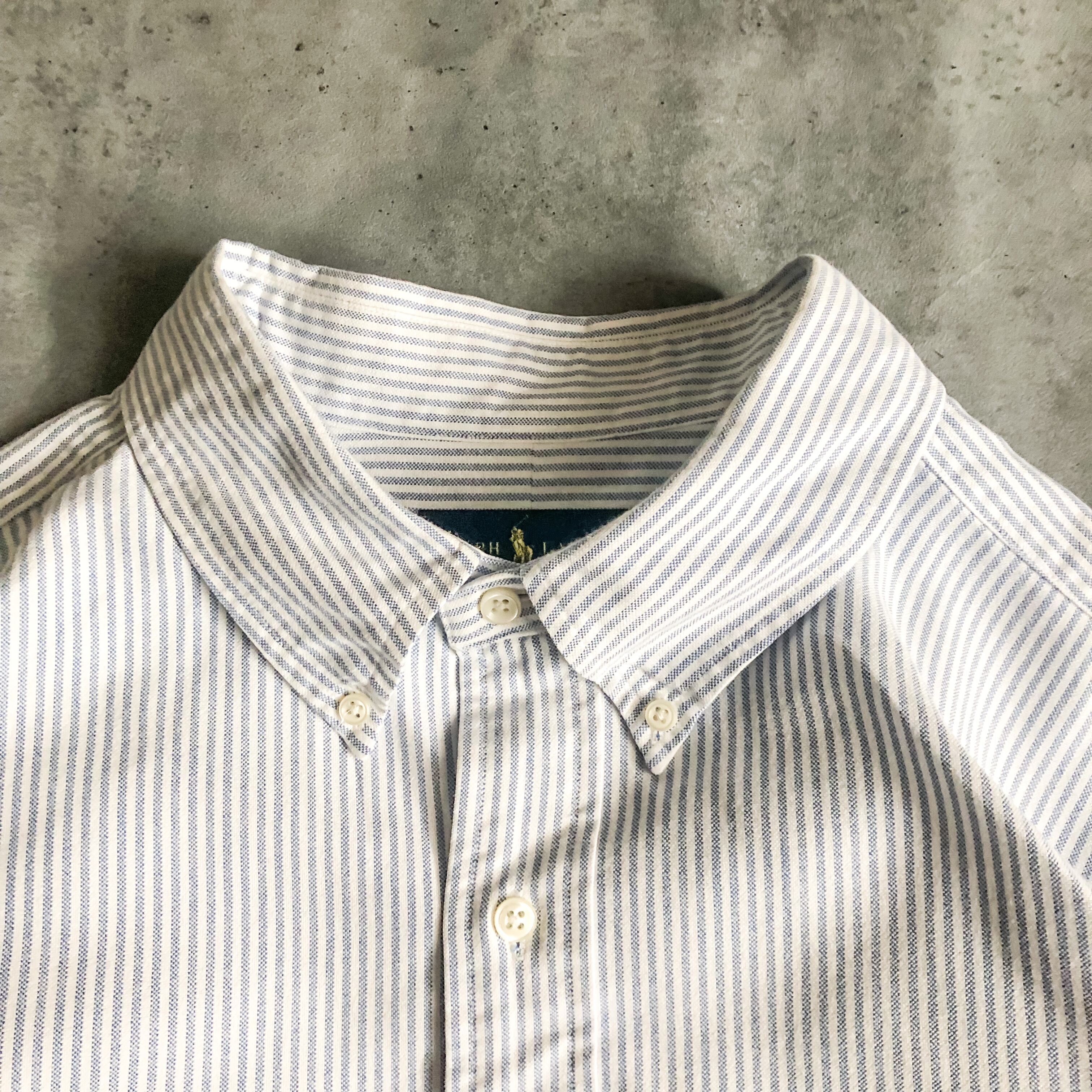 特徴 :ライトブルー系×ホワイトのカラーリングのストライプ柄が爽やかなラルフローレンのコットンシャツ。