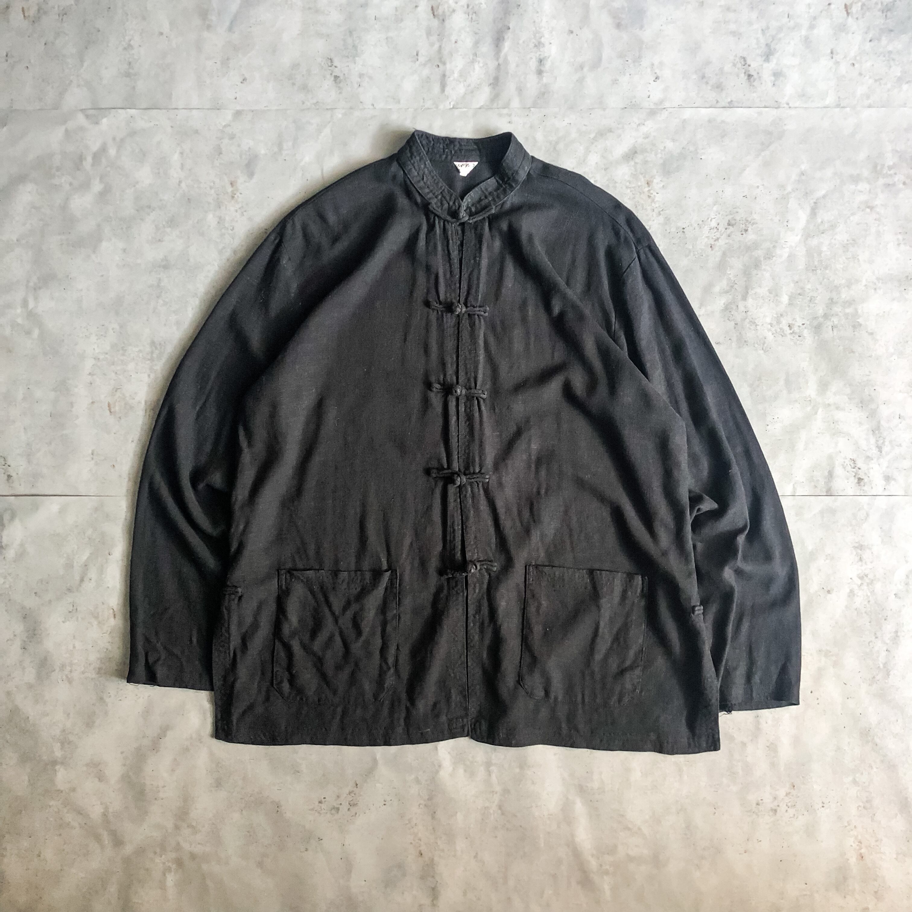 1990's~ black linen cotton china jacket
