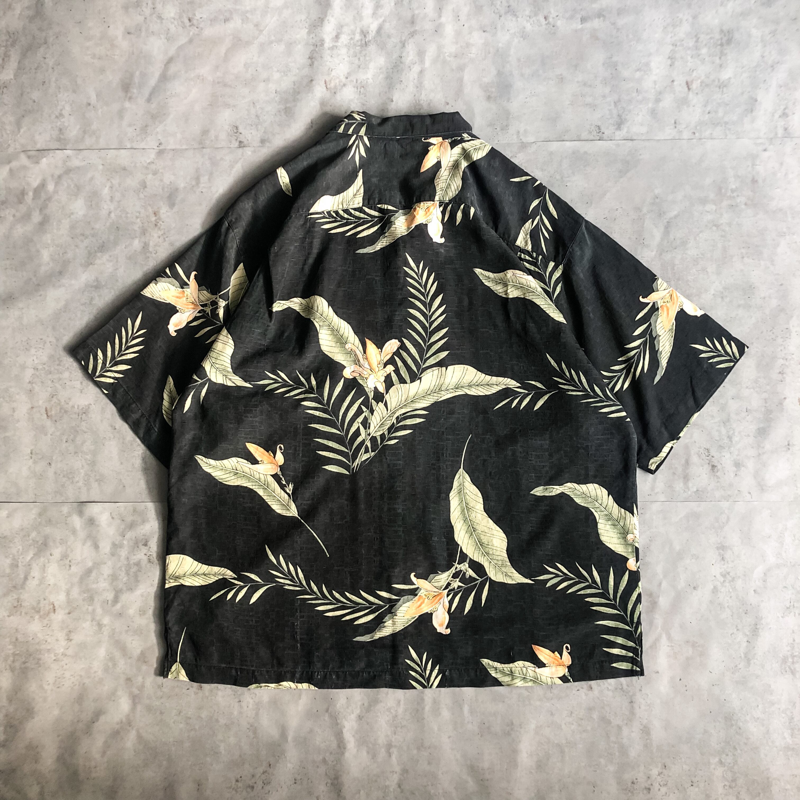 1990's~ Tommy Bahama black bigsize silk hawaiian S/S shirt