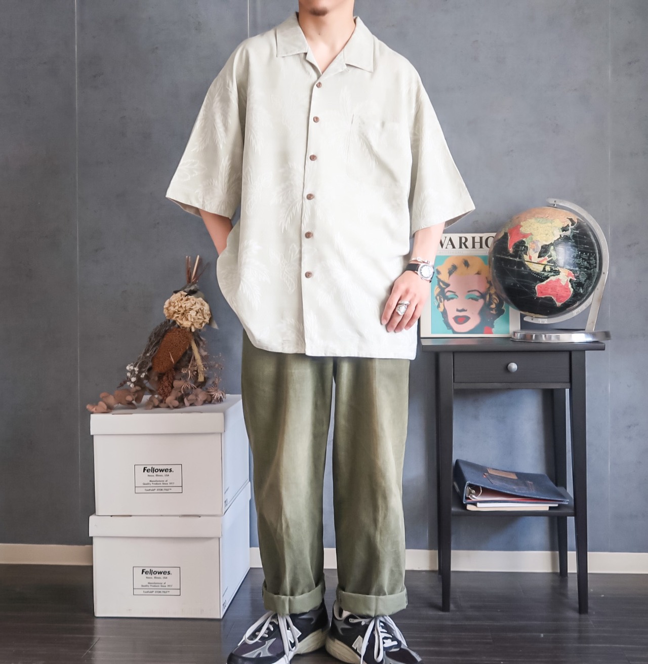 1990's~ bigsize light green silk hawaiian S/S shirt