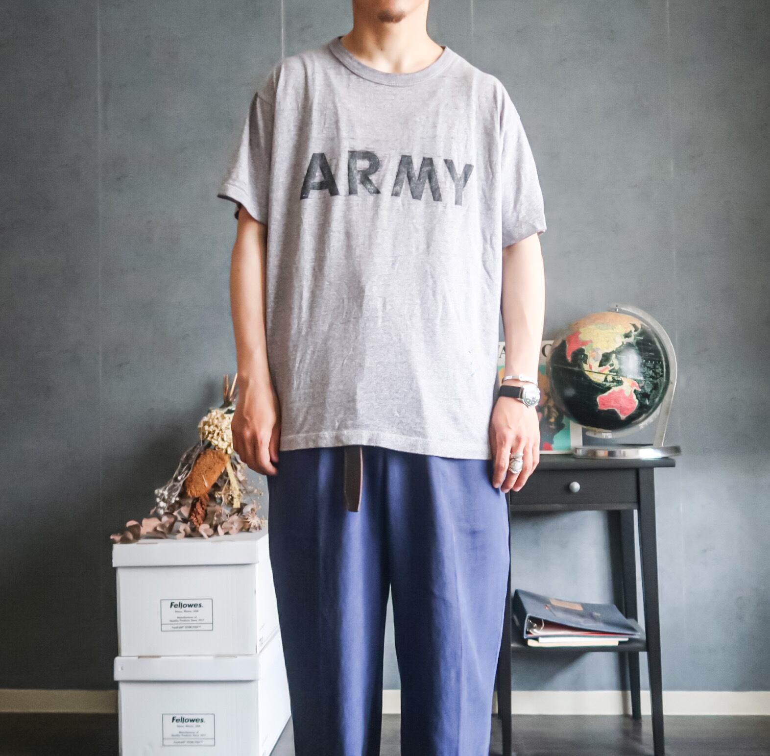 定番なARMY Tシャツですがコットン、ポリ素材特有の経年変化によるかすれたプリントやボディーが非常に雰囲気の良い一枚。