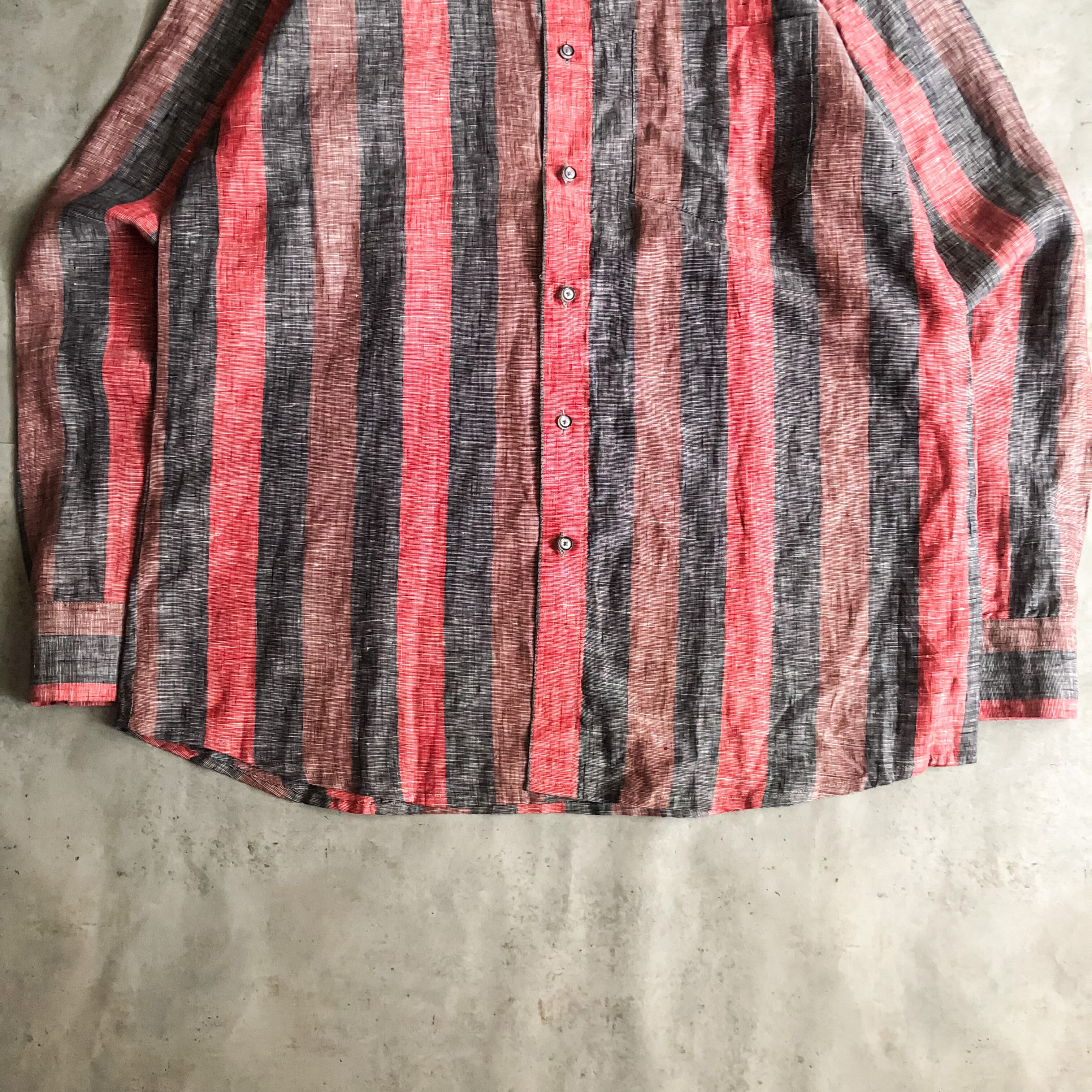 1990's~ gray×red stripe pattern linen shirt