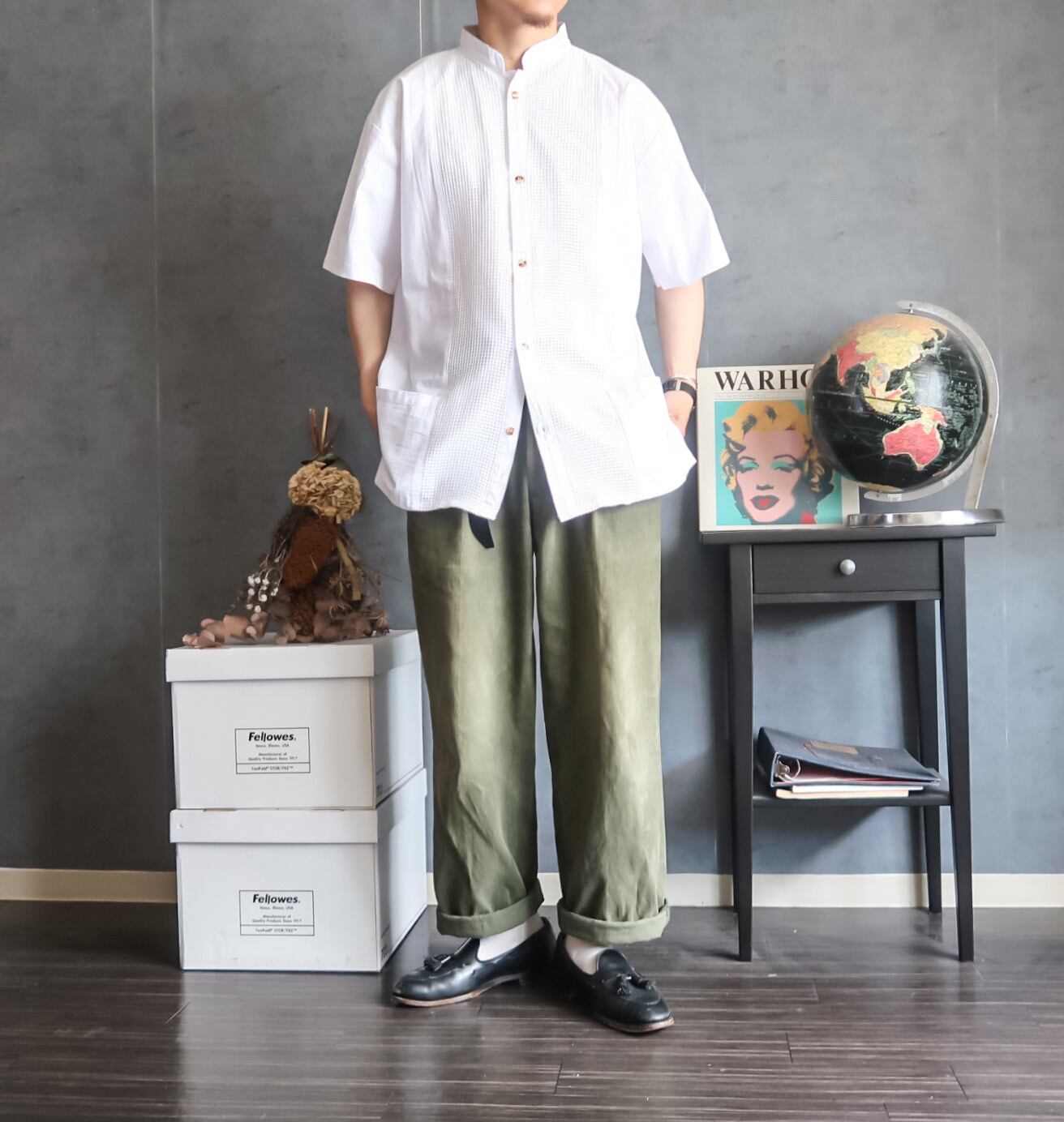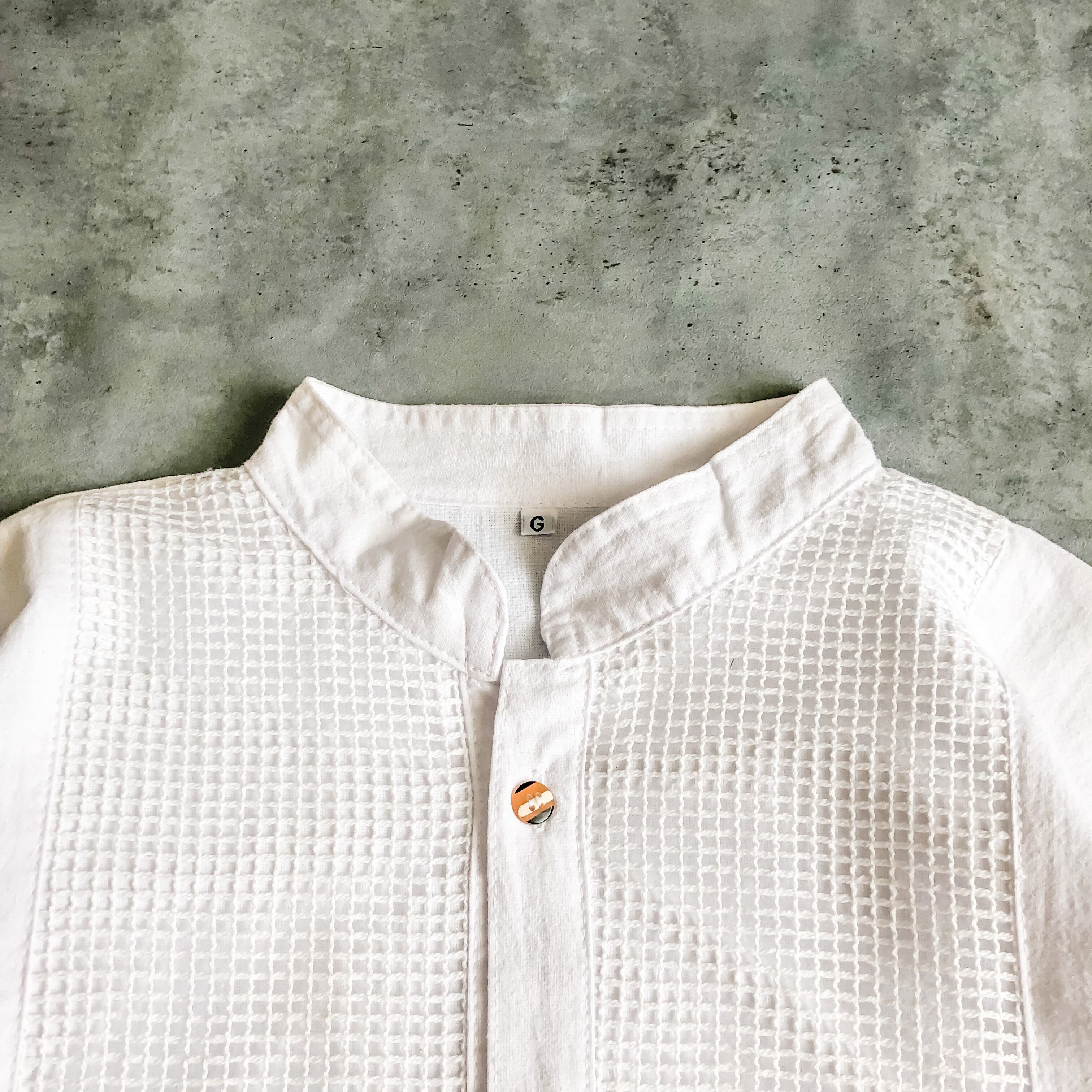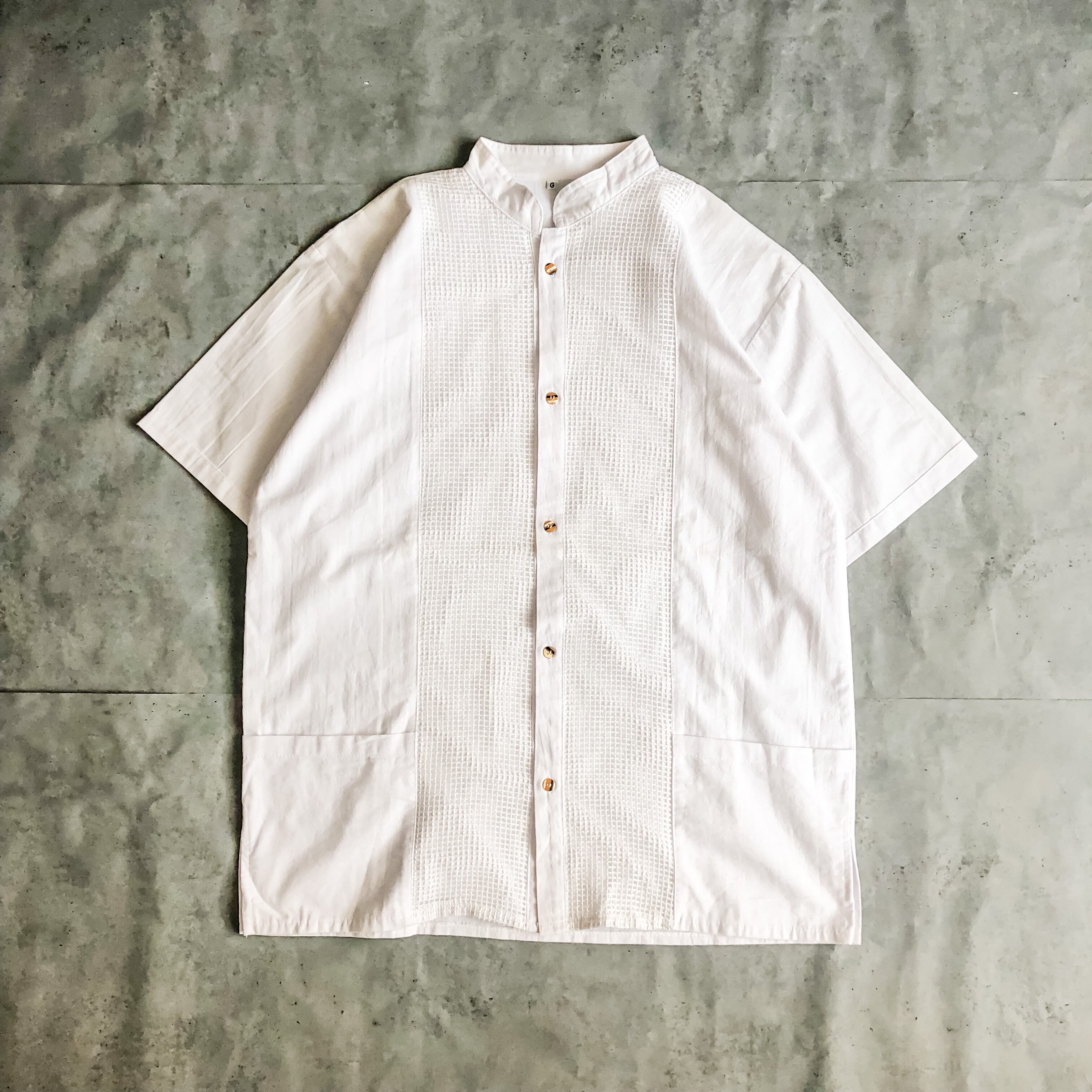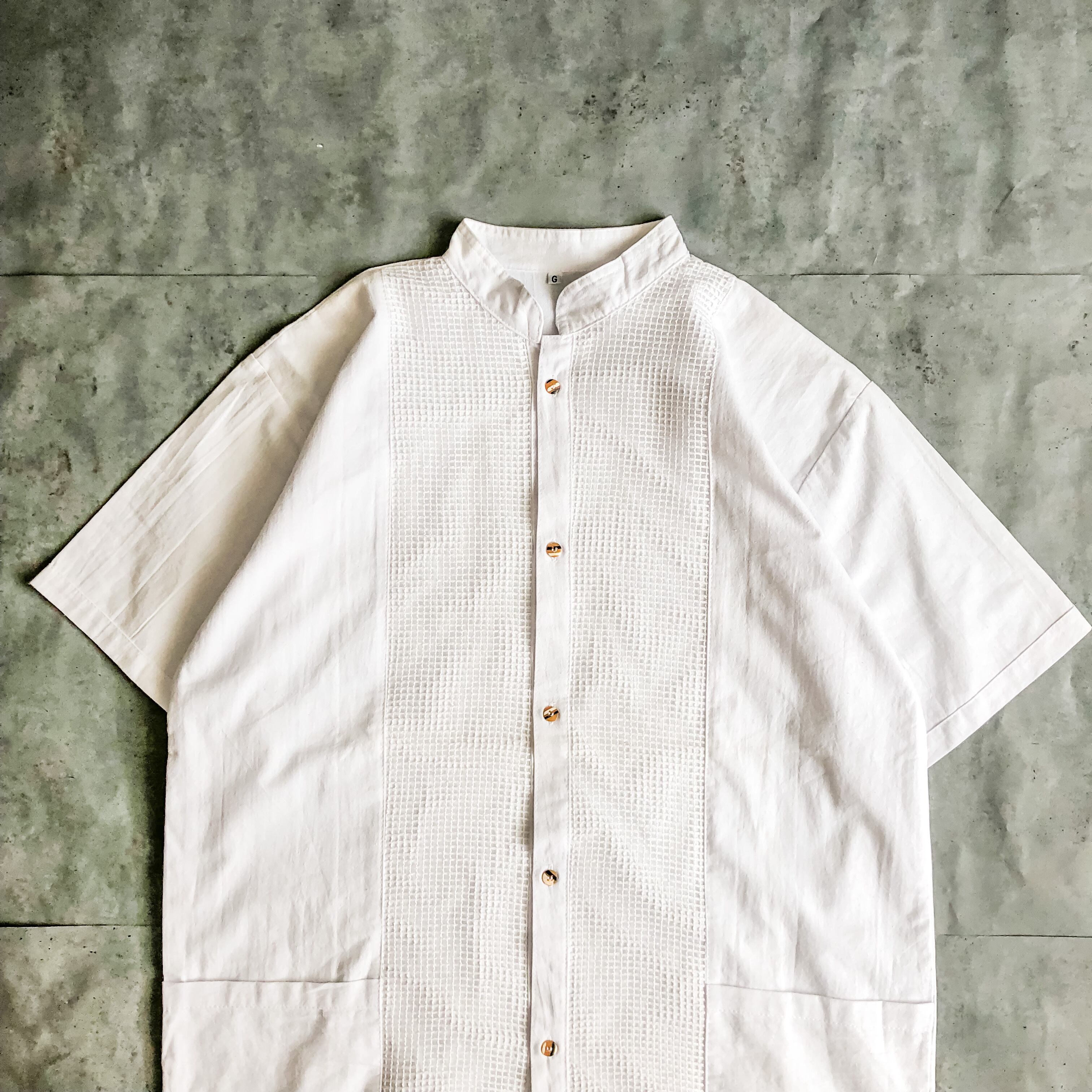 1980's~1990's Guatemala design white stand collar s/s shirt