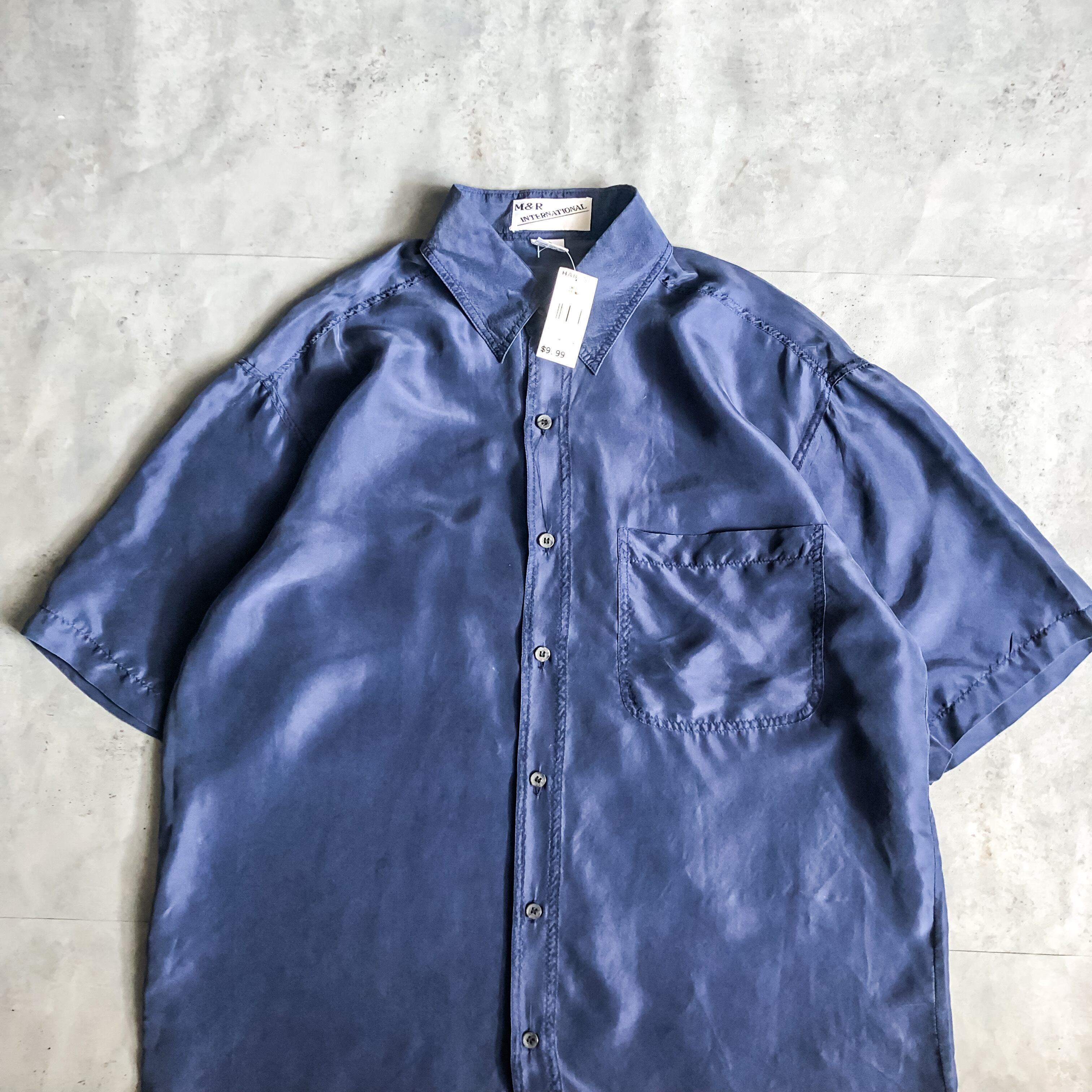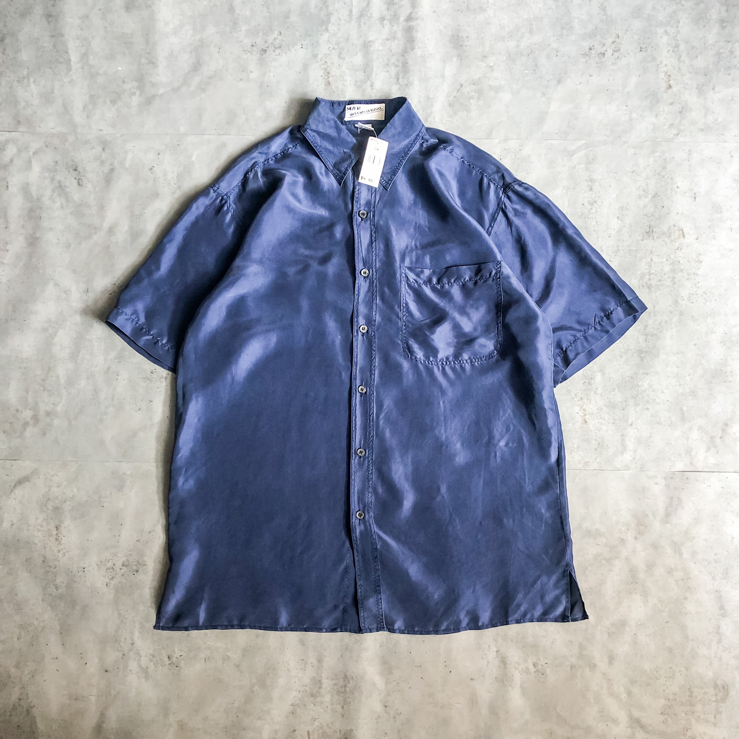 Dead stock! 1990's~ navy box silhouette silk S/S shirt