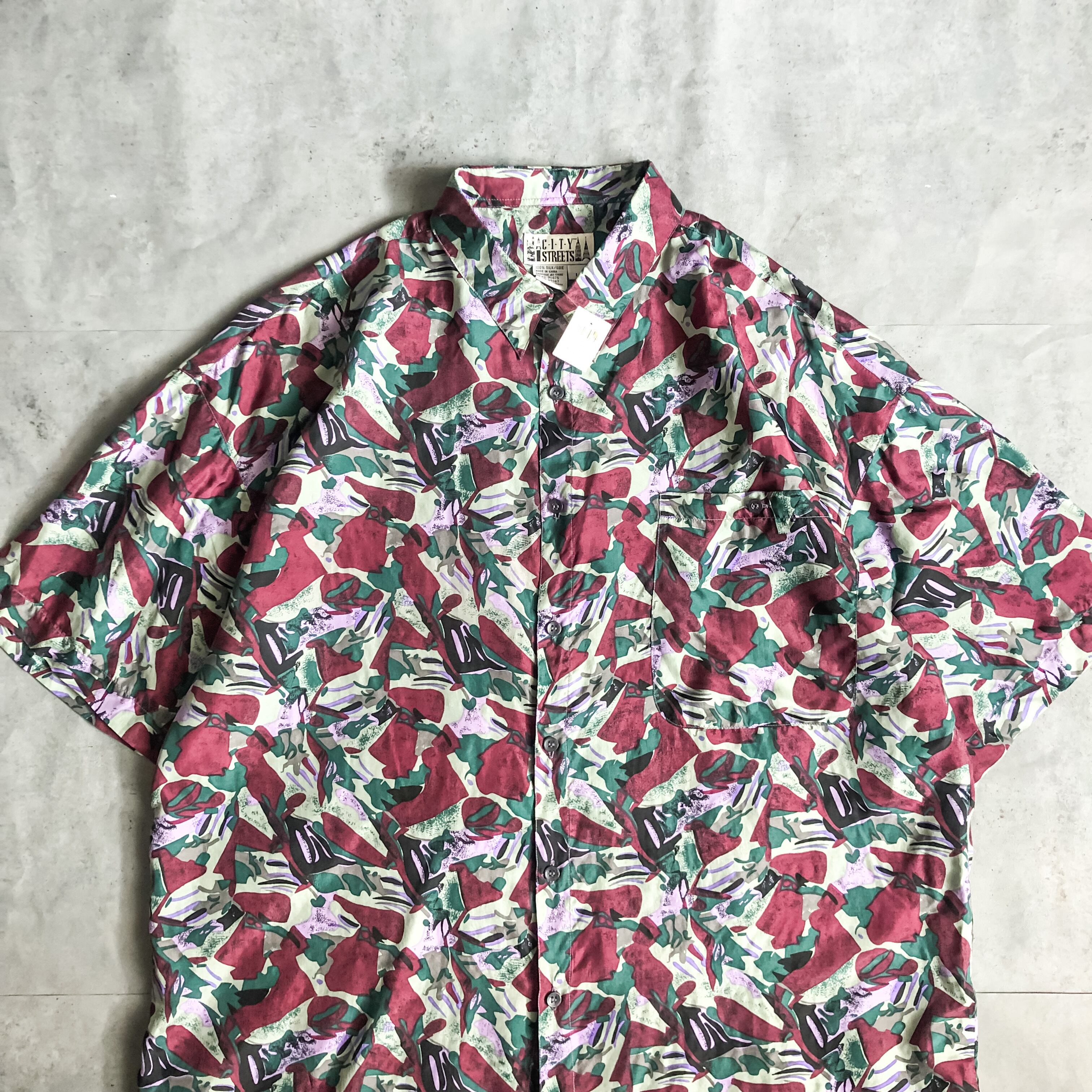 Dead stock! 1990's~ patterned allover silk S/S shirt