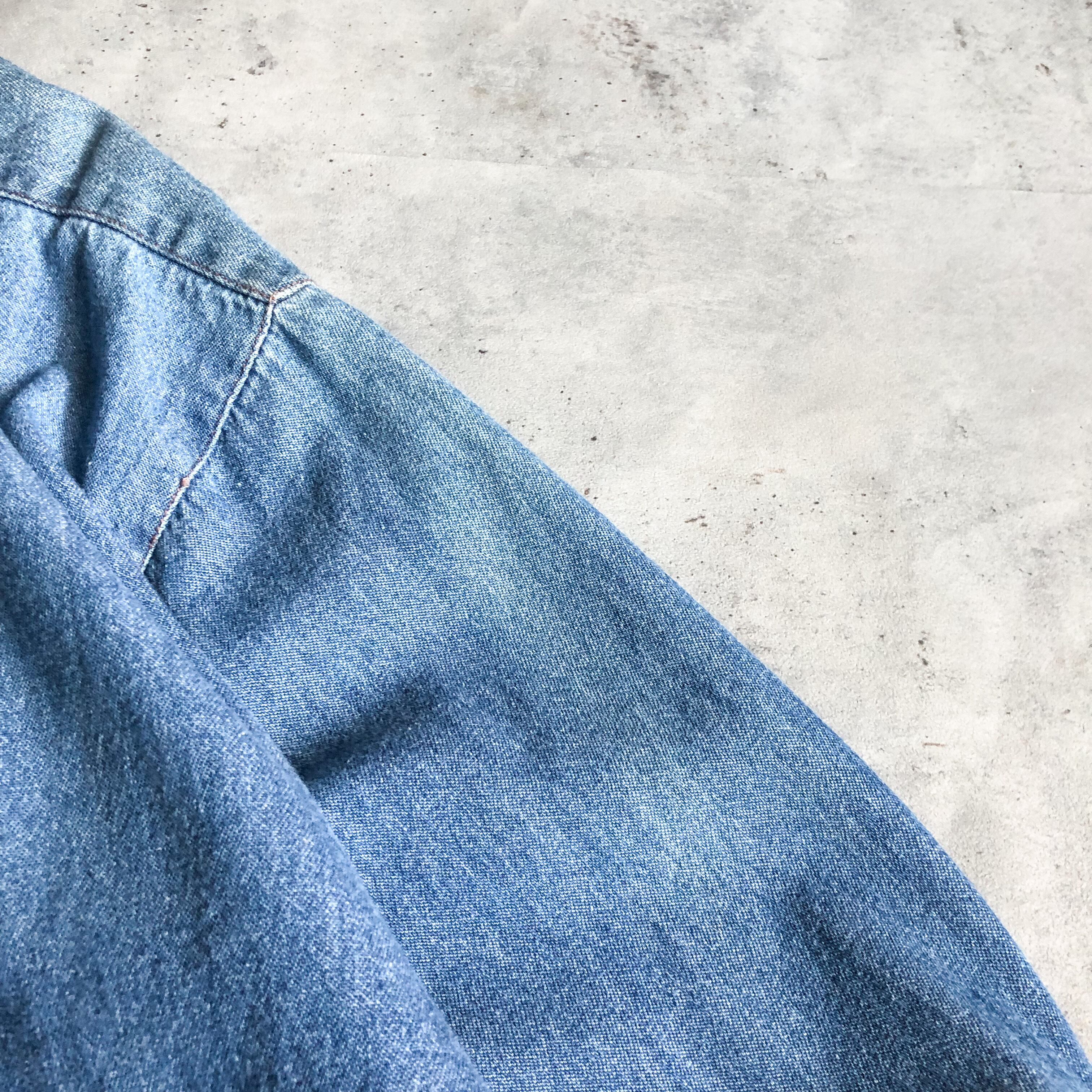 1990's~ bigsize antique design band collor denim shirt
