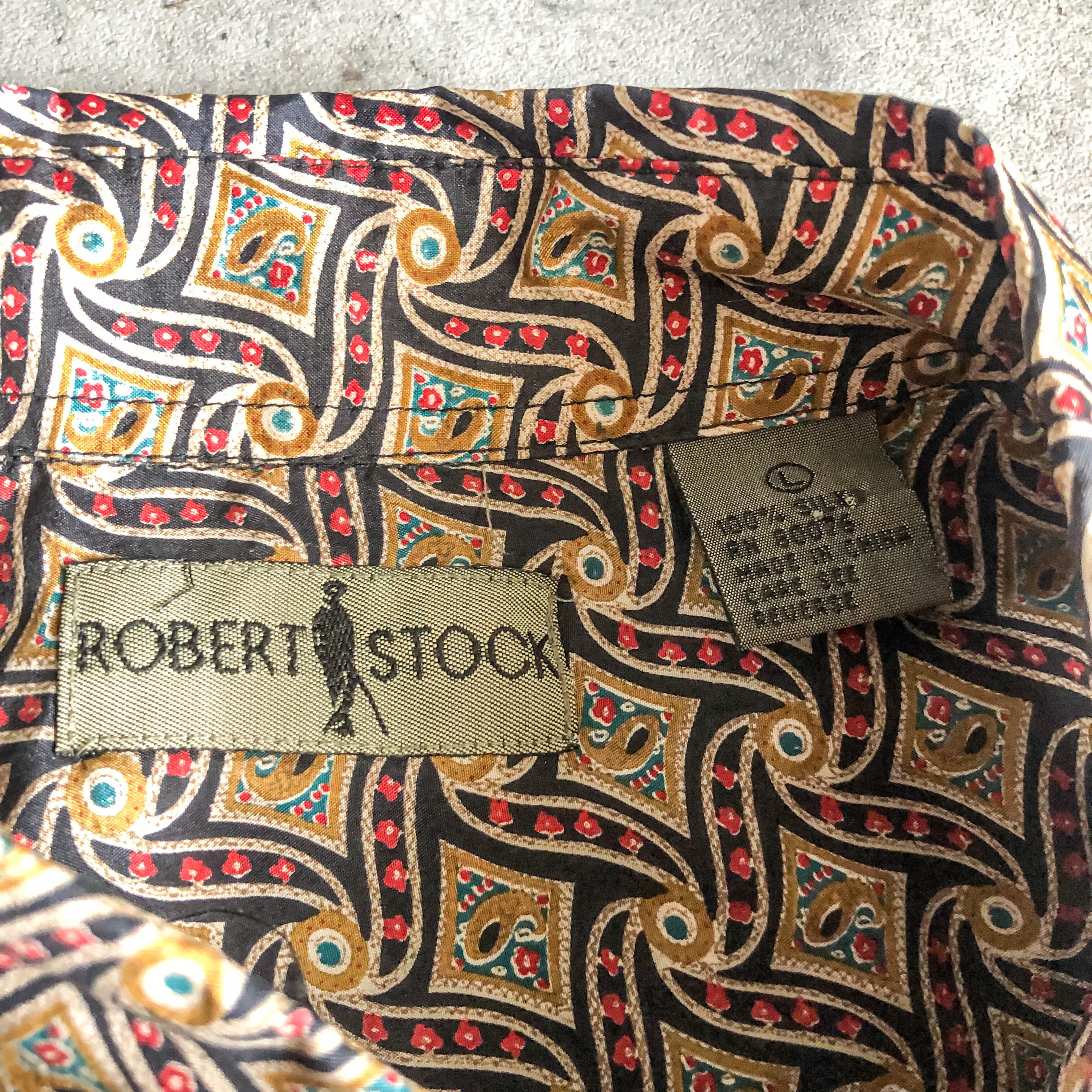 Dead stock! 1990's~ "ROBERT STOCK" patterned allover silk shirt